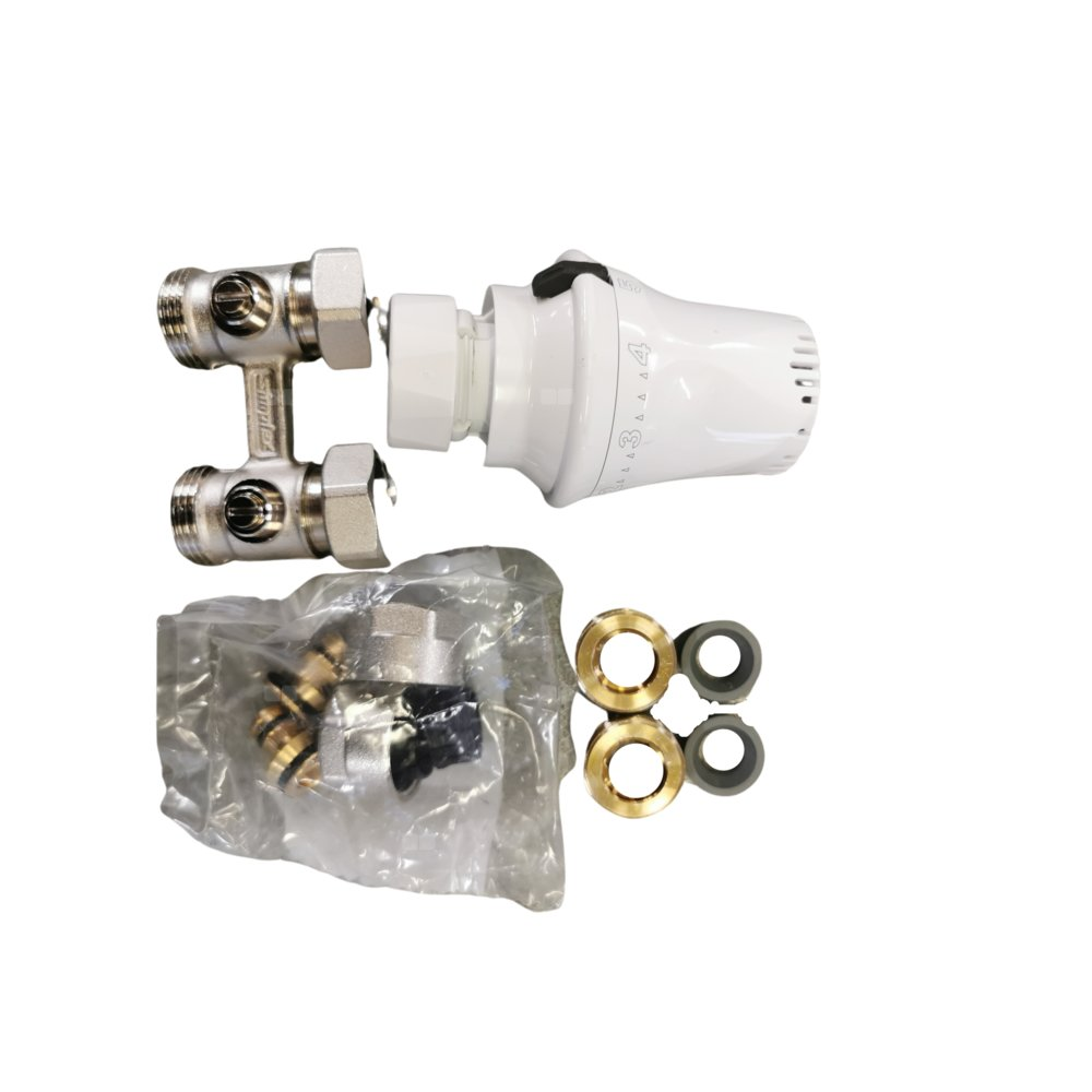 SET INSTALACYJNY (GŁOWICA TER. TC – S4 ZACISK, DWURUROWY BLOK KURKÓW PROSTY MD1/50, NYPLE 1/2" x 3/4", KOMPLET ZŁĄCZA A3 - 16 x