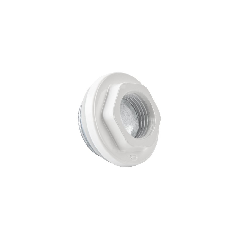 Korek stalowy przelotowy lewy do grzejnika G 500 C, E, F. kolor biały. Stal nierdzewna.