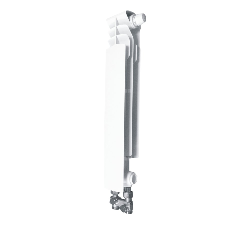 Grzejnik żeberkowy KFA Armatura G500F/D/1 aluminium, podłączenie dolne, prawe, proste 572 x 80 mm, kolor biały (RAL 9016)