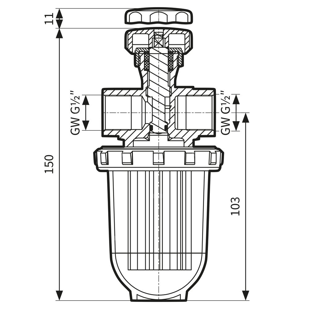 Filtr olejowy AFRISO Z 1/2 - 500 Si dwururowy fi 1/2'' x 1/2'' GW x GW, z wkładem plastikowym, maks. przepływ 310 l/h