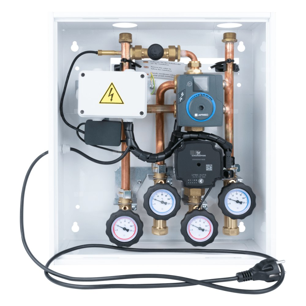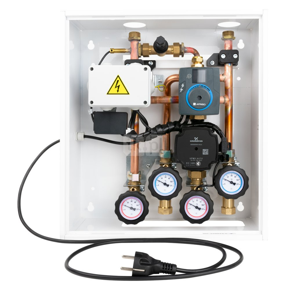 Tworzy dwie strefy ogrzewania o różnych temperaturach zasilania.