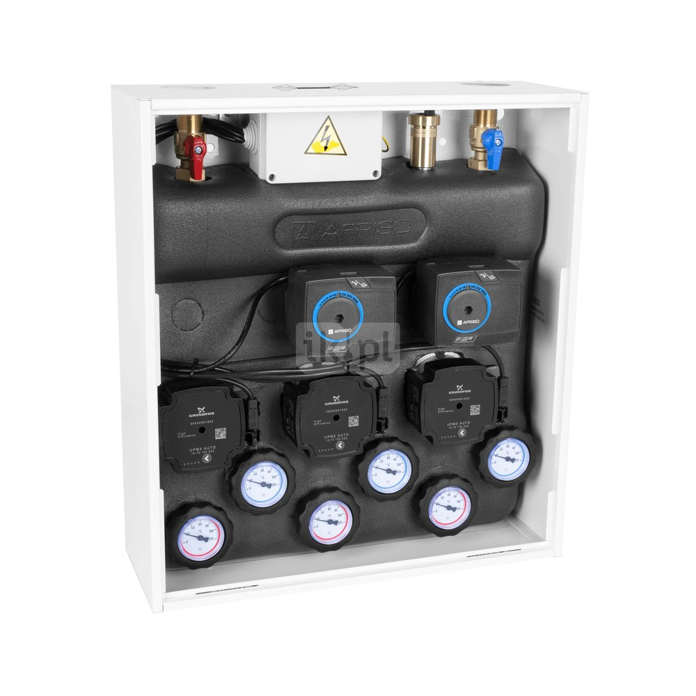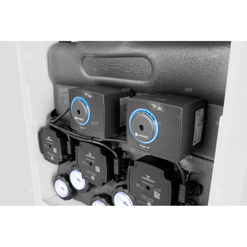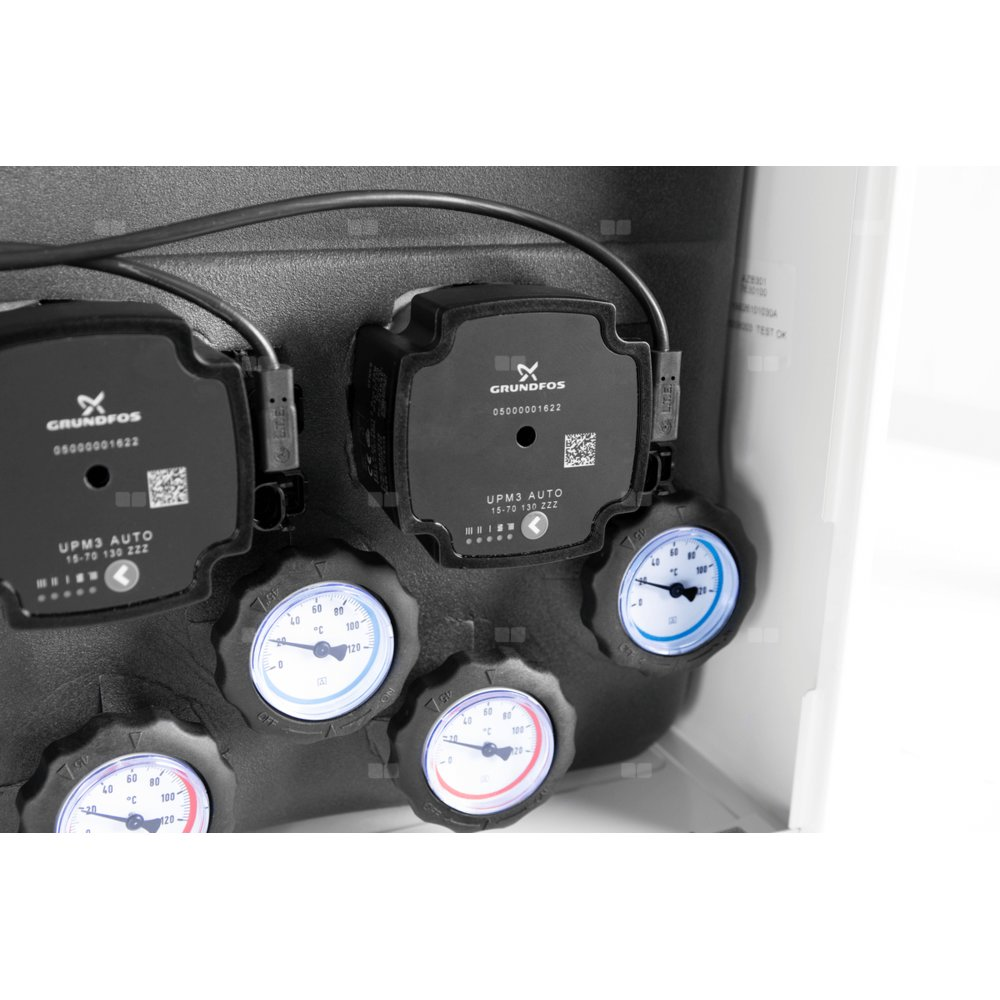 Wyposażony w pompy Grundfos UPm³ oraz zawory obrotowe z siłownikami ARM 141.