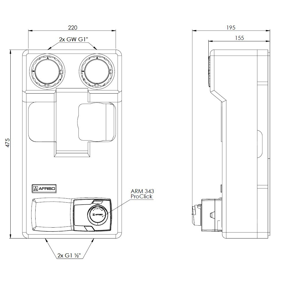 Grupa pompowa AFRISO PrimoTherm 180-2 DN 25 3-WM-SM Vario GZ x GW 1 1/2'' x 1'', z zaworem mieszającym, z izolacją, z siłownikiem arm 343 proclick