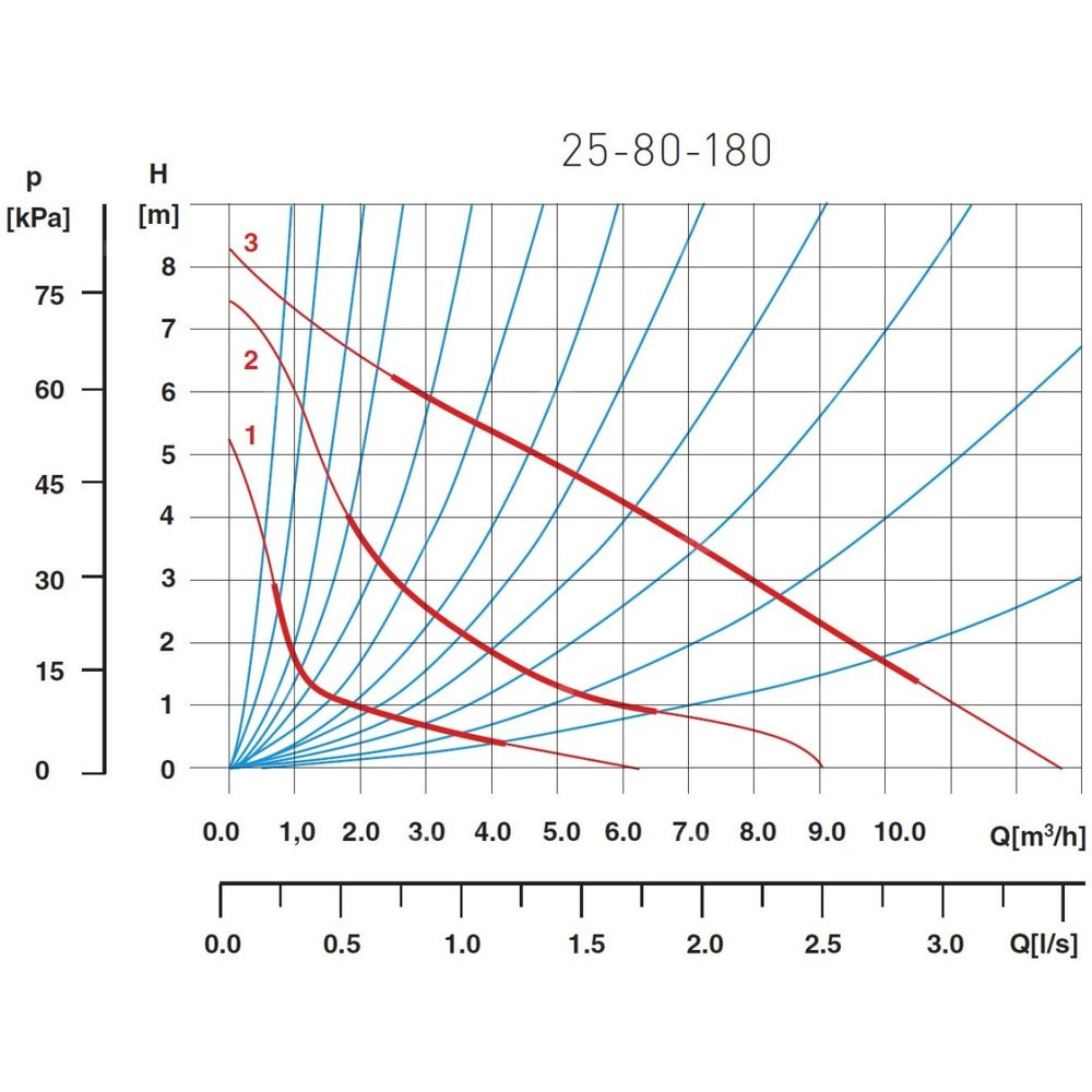 Korpus pompy wykonany jest z żeliwa, obudowa silnika odlana z aluminium, a wirnik uformowany z tworzywa. Wysokiej jakości silnik dwubiegunowy, asynchroniczny, nie wymaga ochrony przed przeciążeniem, posiada trzy prędkości obrotowe regulowane za pomocą specjalnego przełącznika zamontowanego na skrzynce zaciskowej, co pozwala dostosować pracę pompy do charakterystyki instalacji. Winding Plus Technology - najwyższa klasa odporności uzwojenia na przegrzanie.