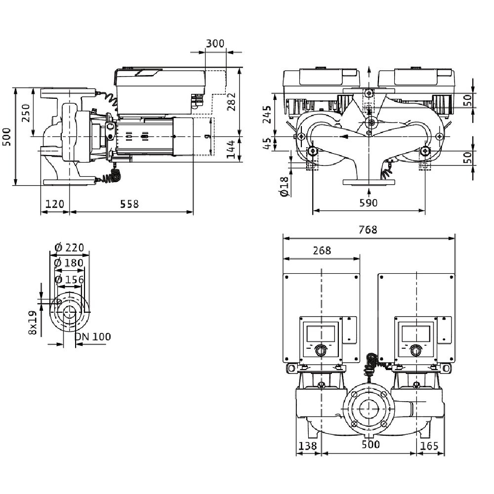 Pompa obiegowa WILO Stratos GIGA 2.0-D 100/1-11/4,0 typu in-line z silnikiem znormalizowanym 50/60 Hz, moc silnika 3.7kW 6.1 A 1500 obr/min, wlot Kołnierz DN 100