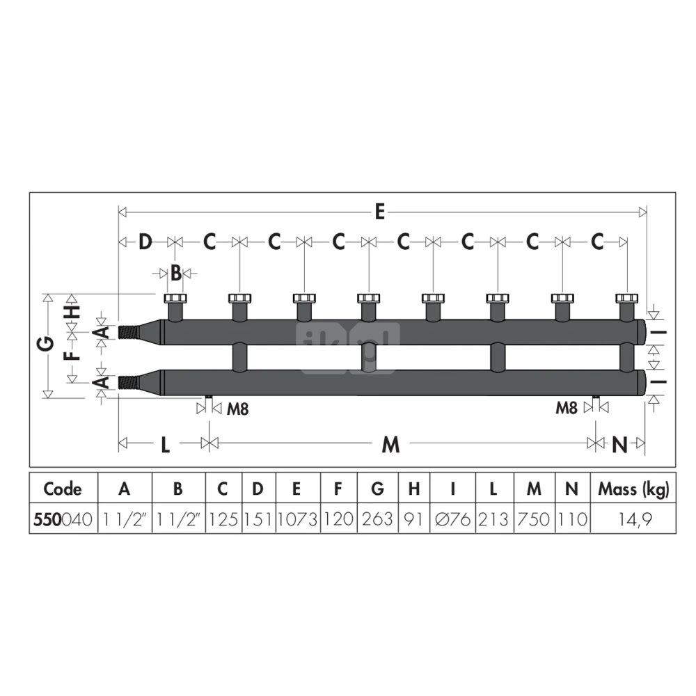 Przyłącza wyjściowe obiegów wtórnych: 1 1/2" GW z nakrętką.