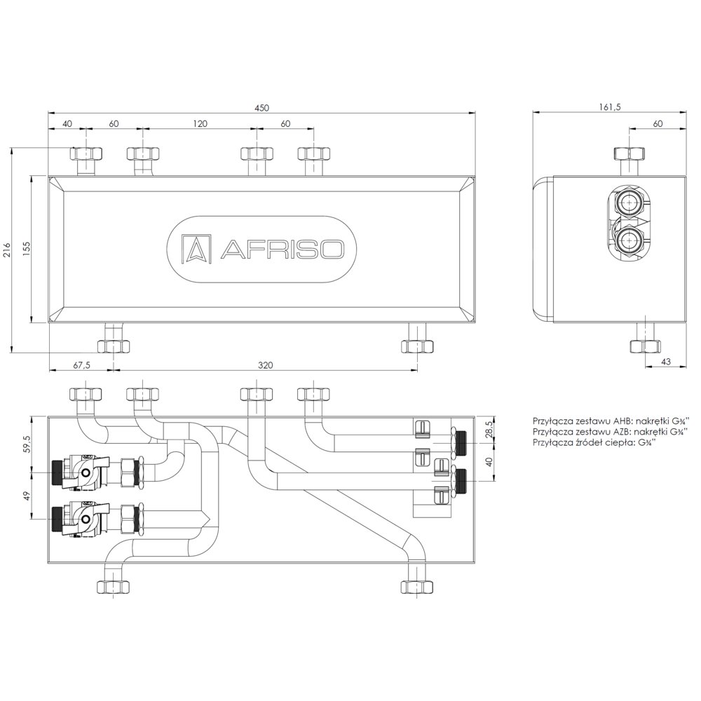 - Łączy zestawy separacyjne **AHB 620 i 622** z zestawami mieszającymi **AZB serii 200 i 300**.- Po połączeniu z zestawami PrimoBox tworzy komplet rozdzielający instalację na poszczególne obiegi i łączący dwa źródła ciepła.