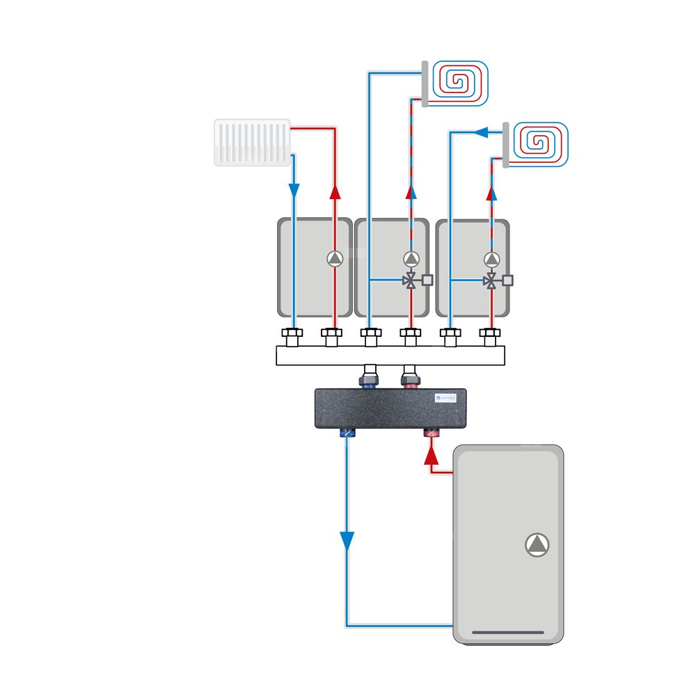 Uniezależnia hydraulicznie obieg źródła ciepła/chłodu od obiegu/obiegów instalacji odbiorczej.