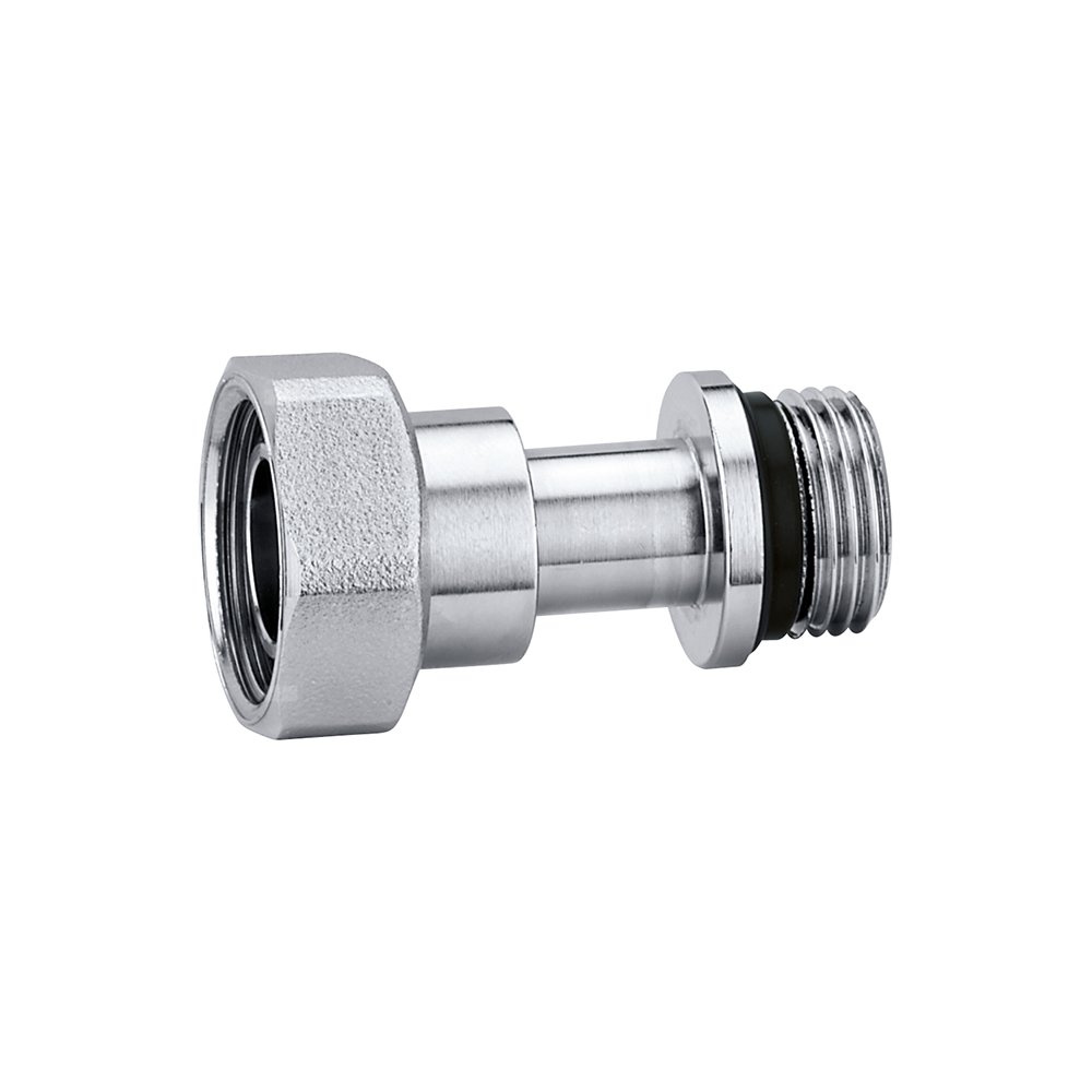 Teleskopowy nypel z nakrętką do zaworów grzejnikowych i zaworów odcinających.