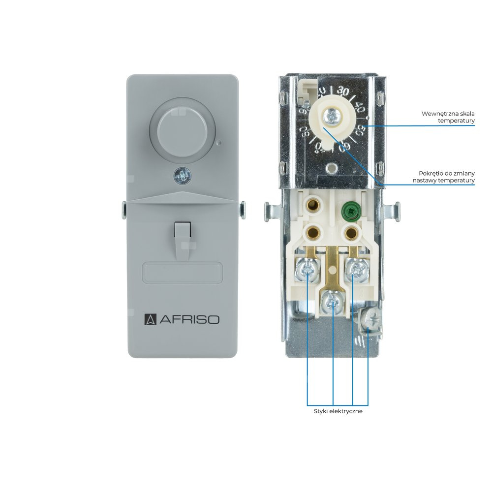 Nastawa temperatury odbywa się poprzez pokrętło umieszczone wewnątrz obudowy termostatu.