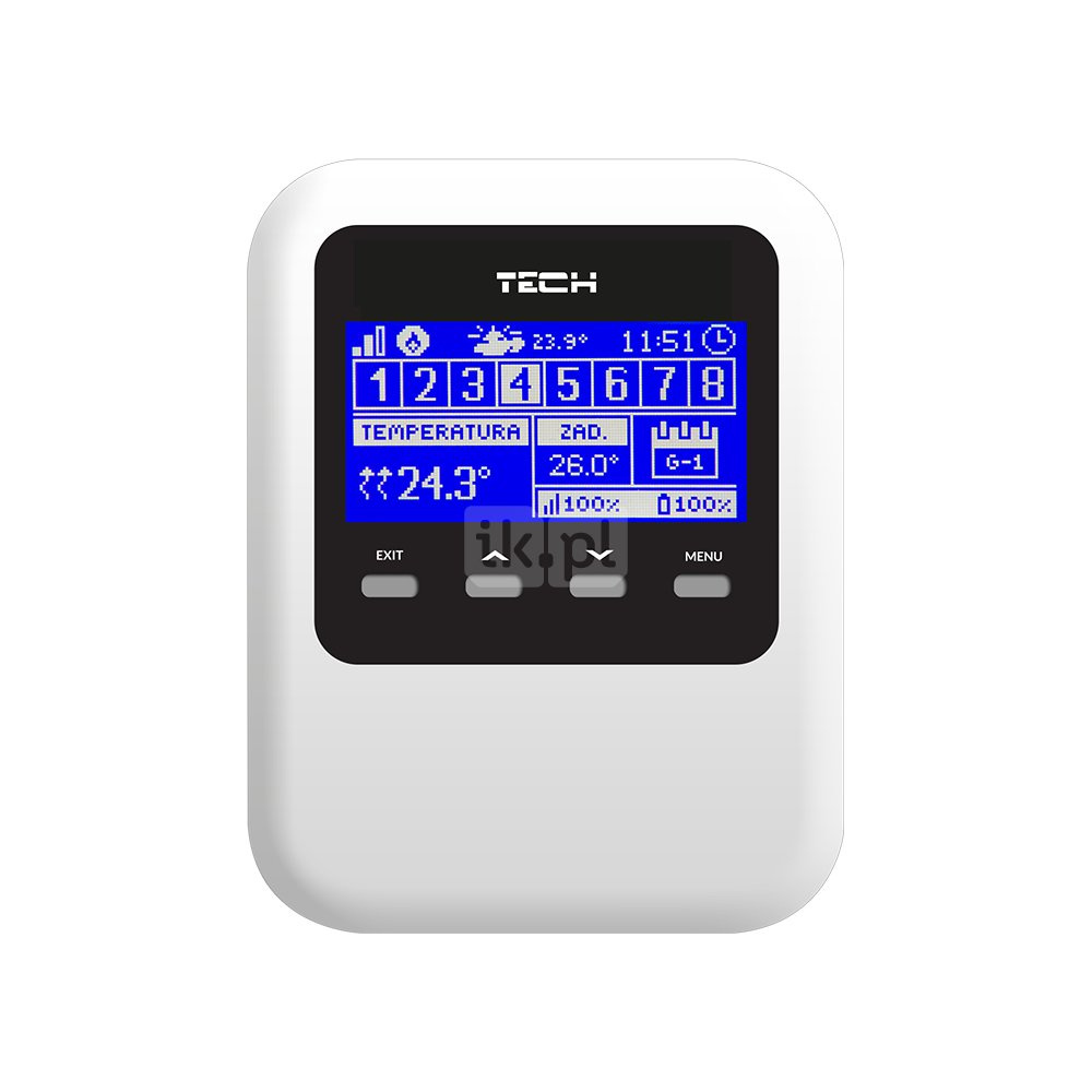 • sterowanie max 8 rożnymi strefami przy pomocy wbudowanego czujnika temperatury