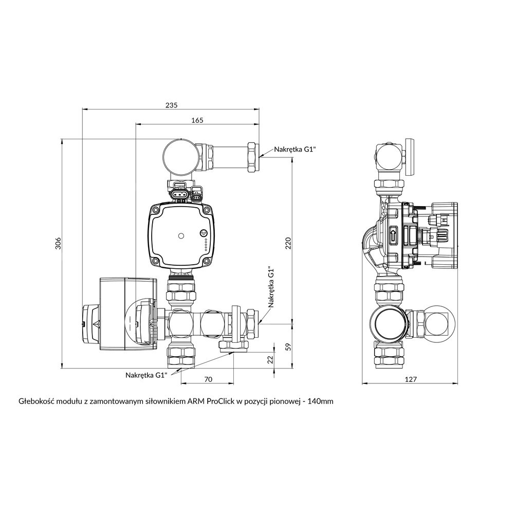 Zamontowane na zaworze mieszającym regulatora zintegrowanego z siłownikiem ACT ProClick lub ARC ProClick umożliwia automatyczną regulację temperatury zasilania stałotemperaturowo lub pogodowo.