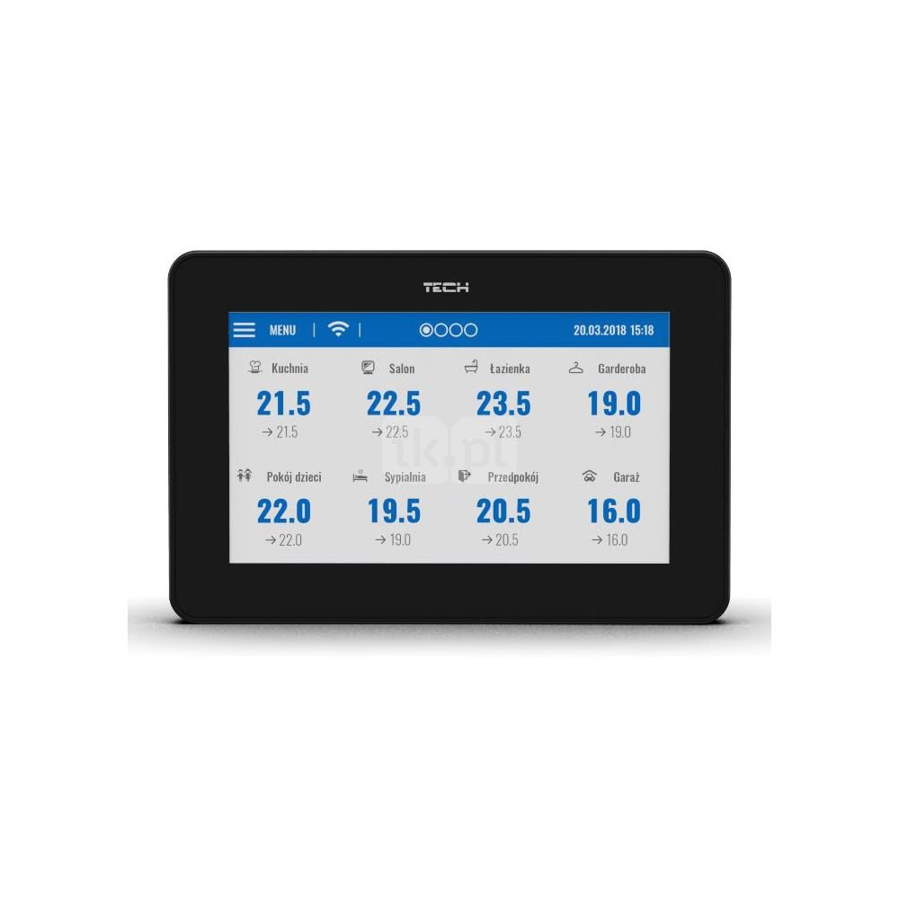 Czytelny, dotykowy panel umożliwia łatwe zarządzanie pracą podrzędnych urządzeń. Aby dokonać ustawień w podrzędnej sterownikowi strefie, wystarczy kliknąć obszar ekranu z informacją o jego stanie. Wygląd wyświetlacza panelu kontrolnego sterowników ogrzewania można dopasować do swoich potrzeb, korzystając z funkcji ustawienia ekranu. Można m.in. ustawić wygaszacz ekranu w postaci zegara albo daty. Dodatkowo użytkownik ma możliwość wyboru wersji kolorystycznej ekranu sterownika oraz włączenia lub wyłączenia dźwięku klawiszy.