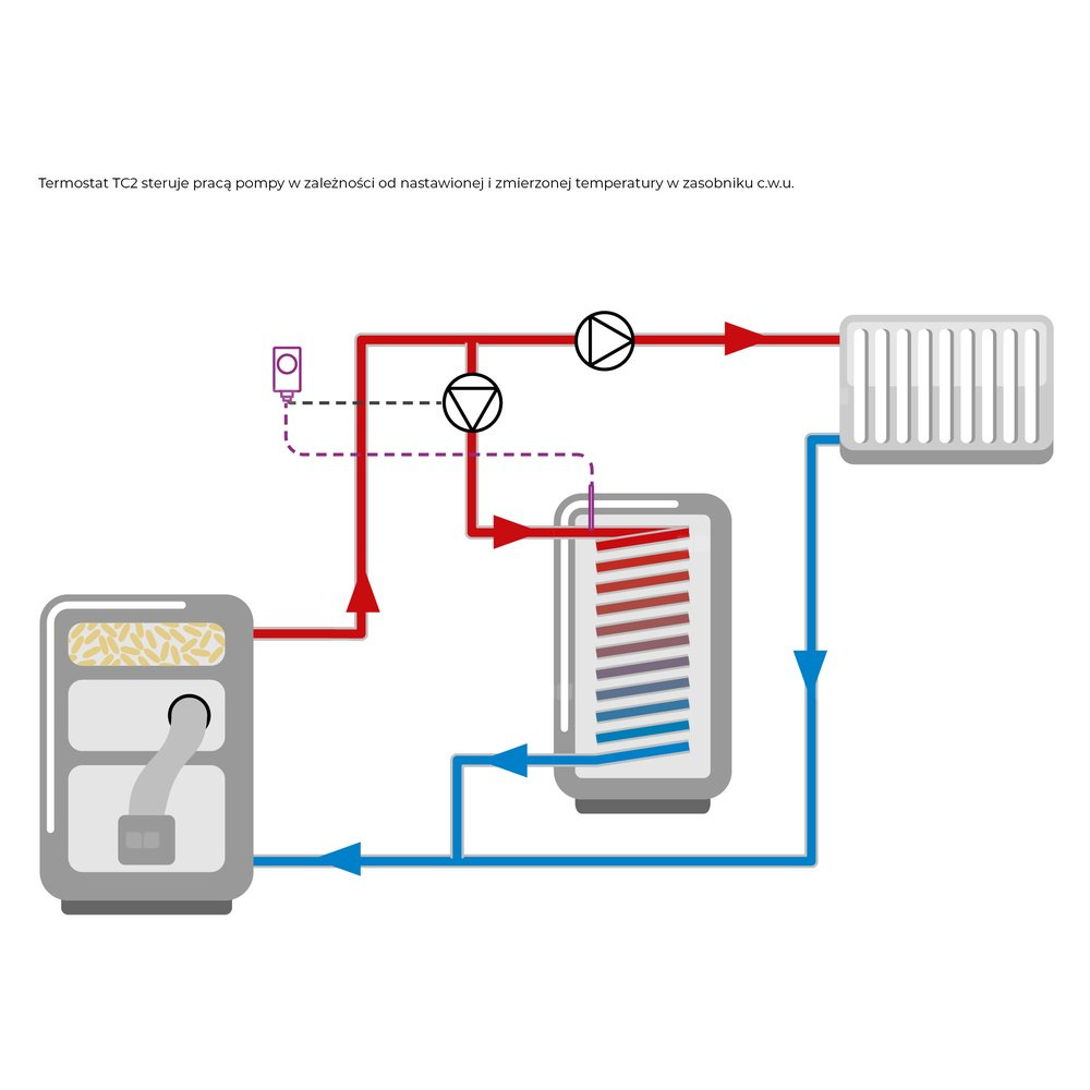Przeznaczony do sterowania urządzeniami zewnętrznymi, na zasadzie włącz/wyłącz.Włącza lub wyłącza sterowane urządzenie w zależności od temperatury zmierzonej w pomieszczeniu i nastawionej na pokrętle.