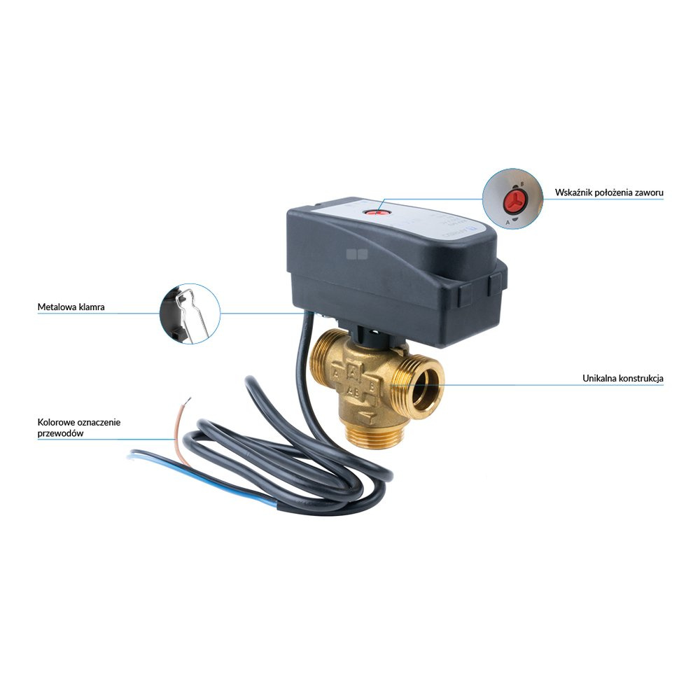 W połączeniu ze sterownikiem 2-punktowym (np. termostatem TC2) automatyzuje pracę instalacji.