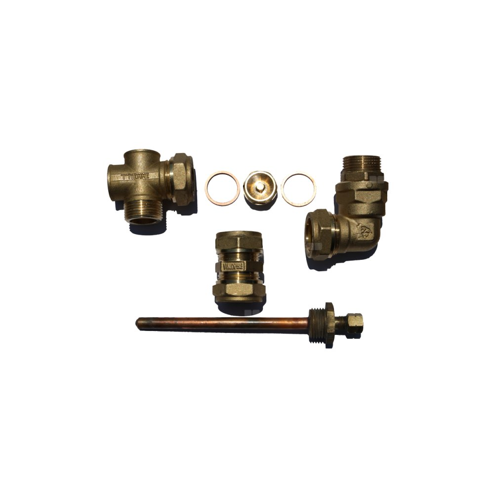 - czwórnik z odpowietrznikiem manualnym i gniazdo sondy termicznej 6mm ( Φ 22/ 3/4")