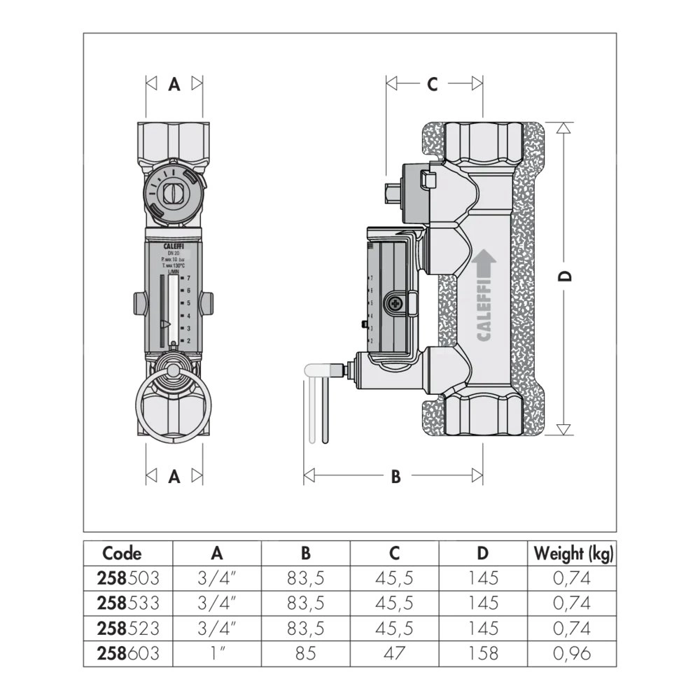 Zawór równoważący z przepływomierzem, do instalacji solarnych Z izolacją. Bezpośredni odczyt natężenia przepływu. Zawór kulowy do regulacji natężenia przepływu. Skala przepływomierza z podziałką oraz magnetycznym wskaźnikiem natężenia przepływu. Przyłącze: G 3/4" (ISO 228-1) GW. Maksymalne ciśnienie pracy: 10 bar. Zakres temperatury medium: -30–130 °C. Wykończenie: chromowane. Maksymalne stężenie glikolu: 50 %. Medium: woda, Roztwory glikolu. Zakres roboczego natężenia przepływu: 2–7 l/min. Materiał: mosiądz.