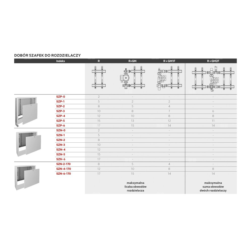 - Maksymalna liczba obwodów rozdzielacza w szafce (R +GM): 10