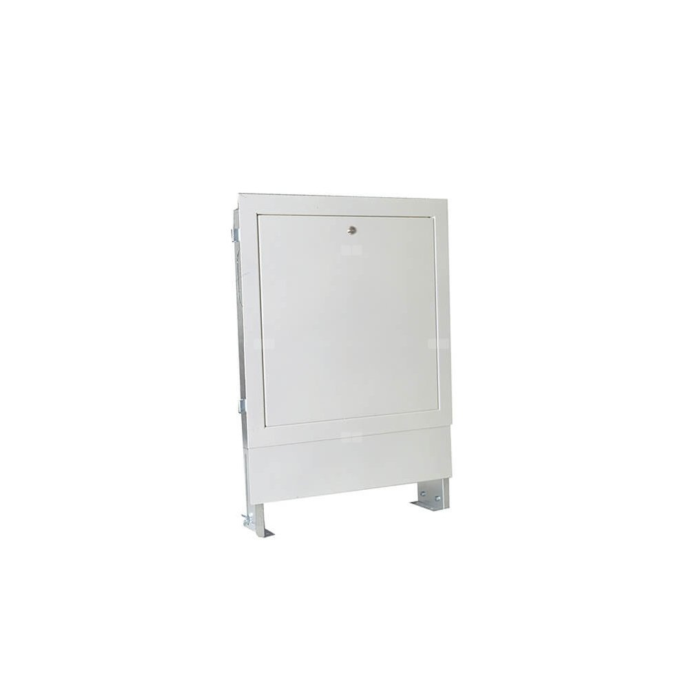 Podtynkowa szafka z blachy stalowej, ocynkowanej, lakierowanej na biało. Regulowana