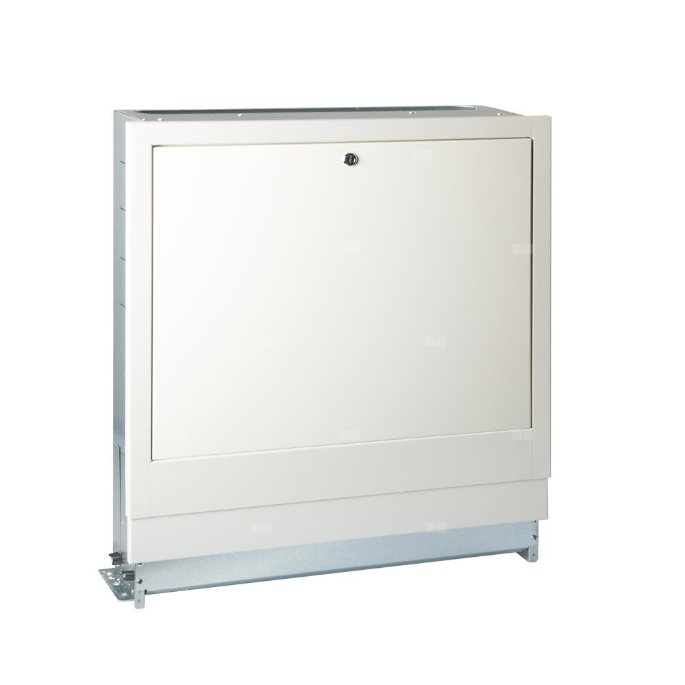 Stabilna szafa z stali ocynkowanej. W zestawie: zdejmowane drzwi lakierowane na biało, staliby uchwyt do montażu rozdzielacza. Z góry dostępne otwory umożliwiające połączenie z szafka HIU2-U (do montażu stacji HIU2). Głębokość 150 mm.