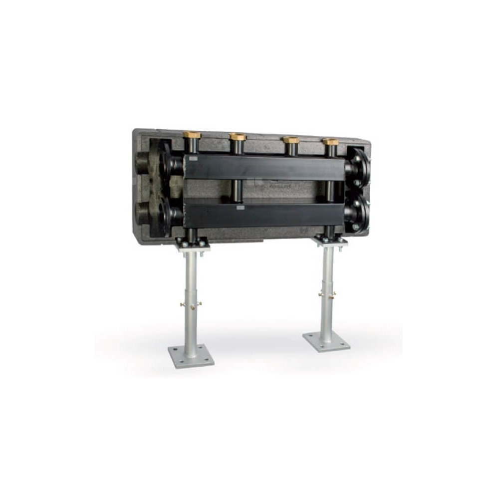 obiegów grzewczych 2” (możliwość podłączenia grup DN 25 i DN 32 przy pomocy przejściówek REDU50/32 - należy zamawiać oddzielnie). Modułowa konstrukcja. Izolacja cieplna EPP. Możliwość podłączenia zasilania z prawej lub lewej. Dla obsługi kotła lub zespołu kotłów do 460 kW (kołnierz DN80). Wsporniki trzeba zamawiać oddzielnie. Jako osprzęt dostępne również kolana do łączenia rozdzielaczy.