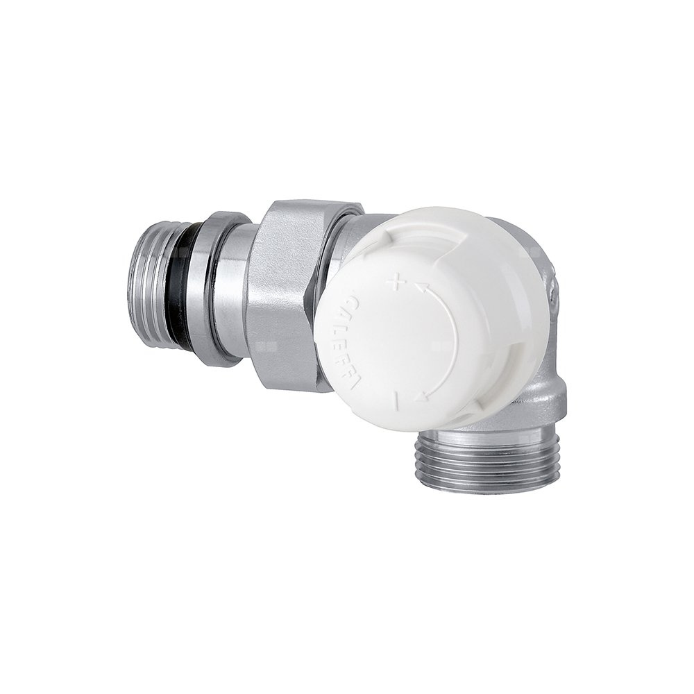 3-osiowy grzejnikowy zawór odcinający podłącznie rury: 23 p. 1,5, wlot, Podłączenie do złączek Caleffi. podłączenie grzejnika: G 1/2" A (ISO 228-1) GZ, wylot. Maksymalne ciśnienie pracy: 10 bar. Zakres temperatury medium: 5–100 °C. Wykończenie: chromowane. Kvs: 1,40 m³/h. Materiał: mosiądz.