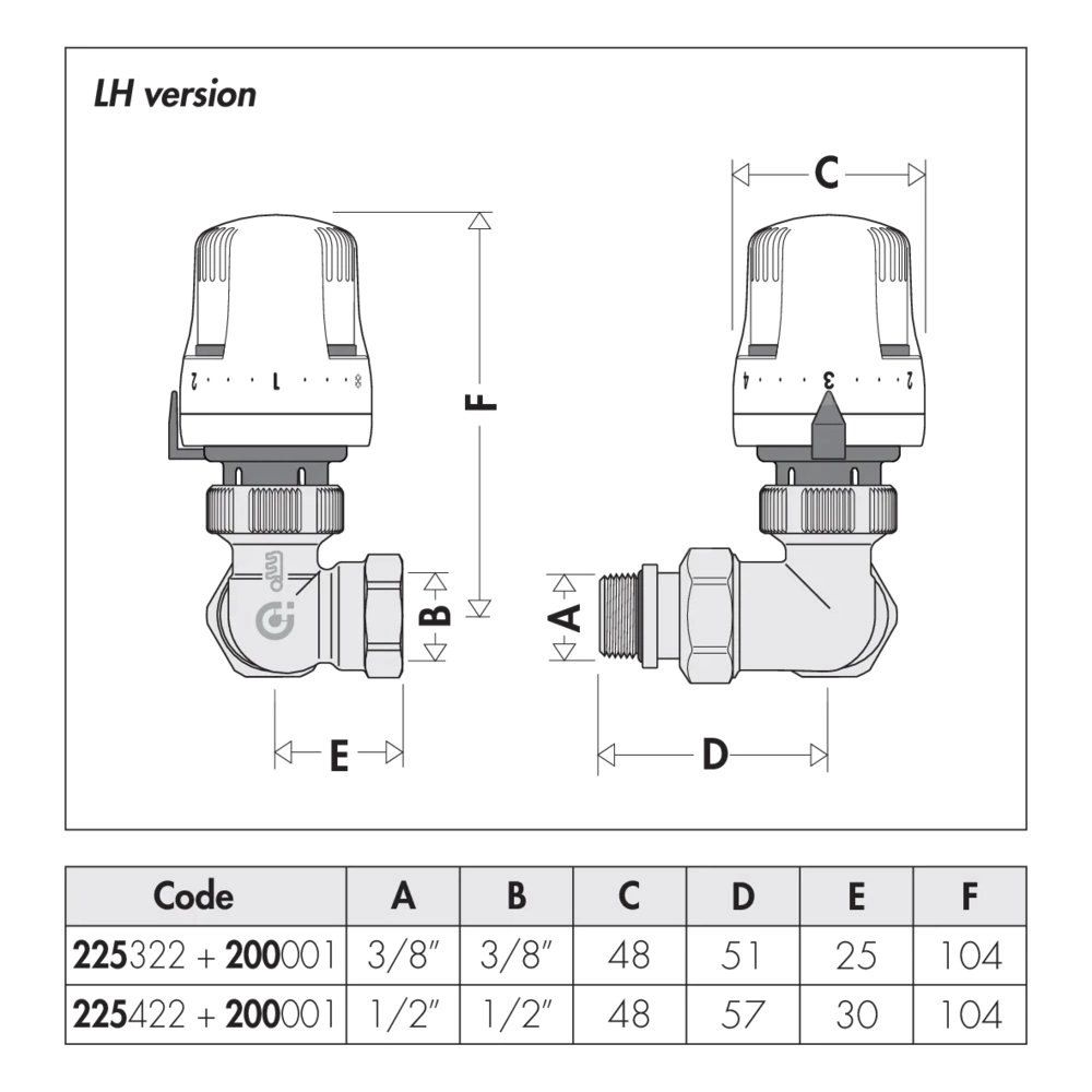 3-osiowy grzejnikowy zawór termostatyczny do rur stalowych (i miedzianych z serią 441). Wykonanie lewe 1/2"