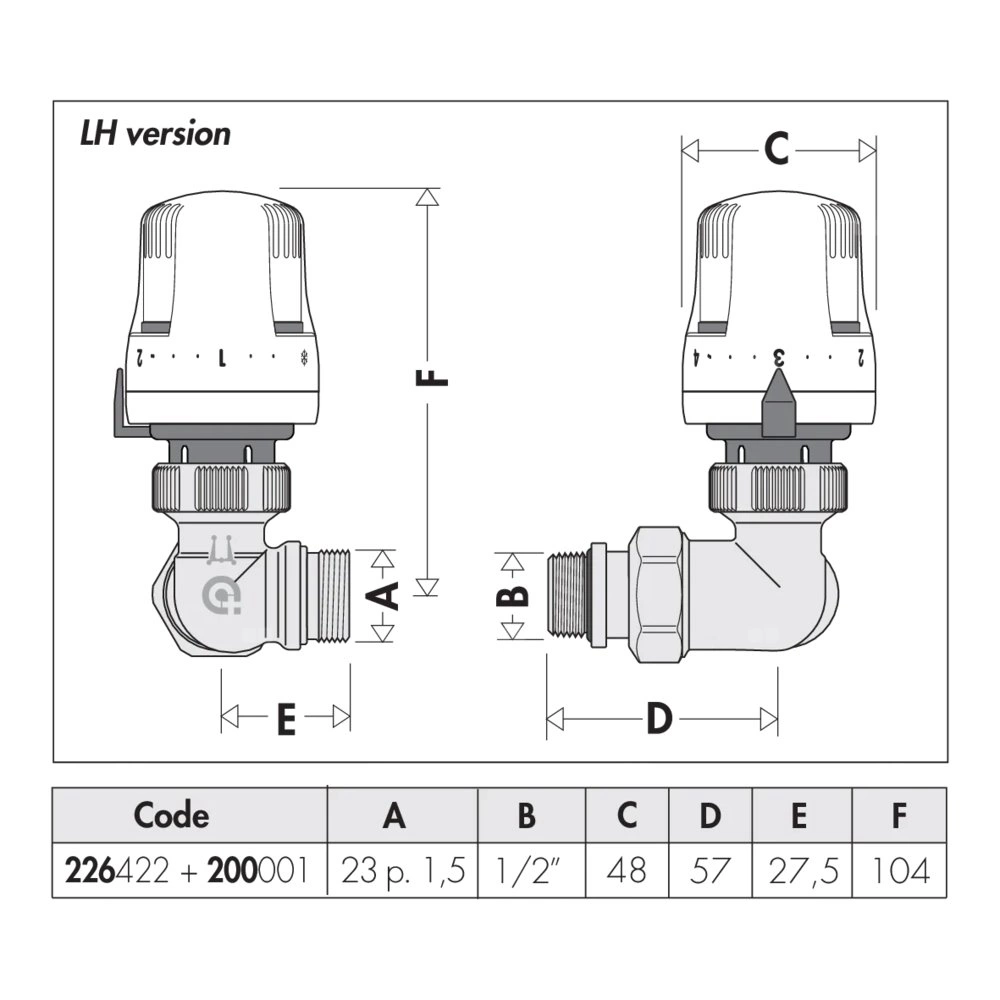 3-osiowy grzejnikowy zawór termostatyczny przystosowany do montażu głowic termostatycznych lub siłowników elektrotermicznych.