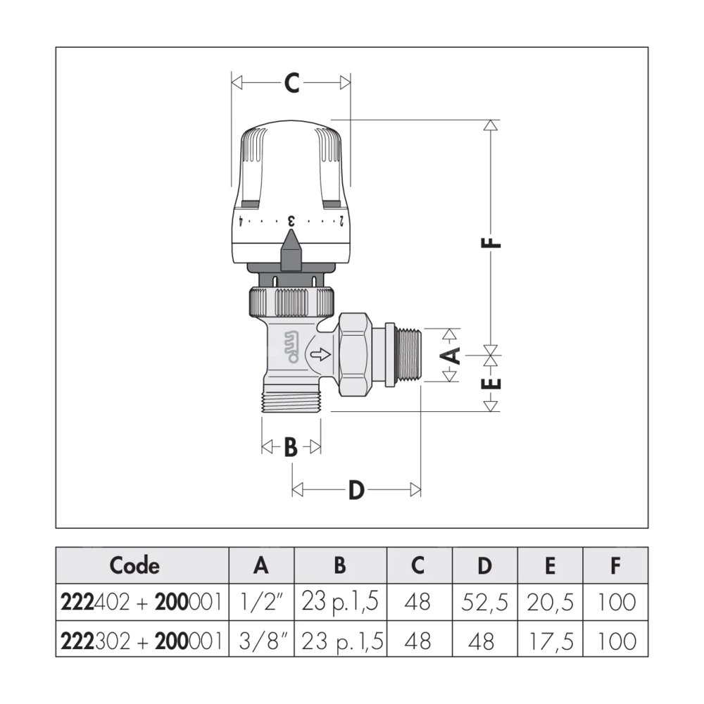 Kątowy grzejnikowy zawór termostatyczny przystosowany do montażu głowic termostatycznych lub siłowników termoelektrycznych. Wersja kątowa. Do rur miedzianych i z tworzyw sztucznych jedno- i wielowarstwowych. podłącznie rury: 23 p. 1,5, wlot, podłączenie kątowe, Podłączenie do złączek Caleffi. podłączenie grzejnika: G 3/8" A (ISO 228-1) GZ, wylot, podłączenie kątowe. Maksymalne ciśnienie pracy: 10 bar. Zakres temperatury medium: 5–100 °C. Wykończenie: chromowane. Kvs: 2,29 m³/h. Materiał: mosiądz.