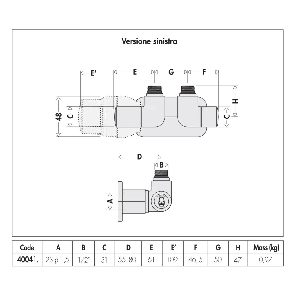 HIGH-STYLE para zaworów dekoracyjnych 3-osiowych. Przyłącze centralne. Wykonanie lewe. Wykończenie: chrom 1/2" 23 p. 1.5