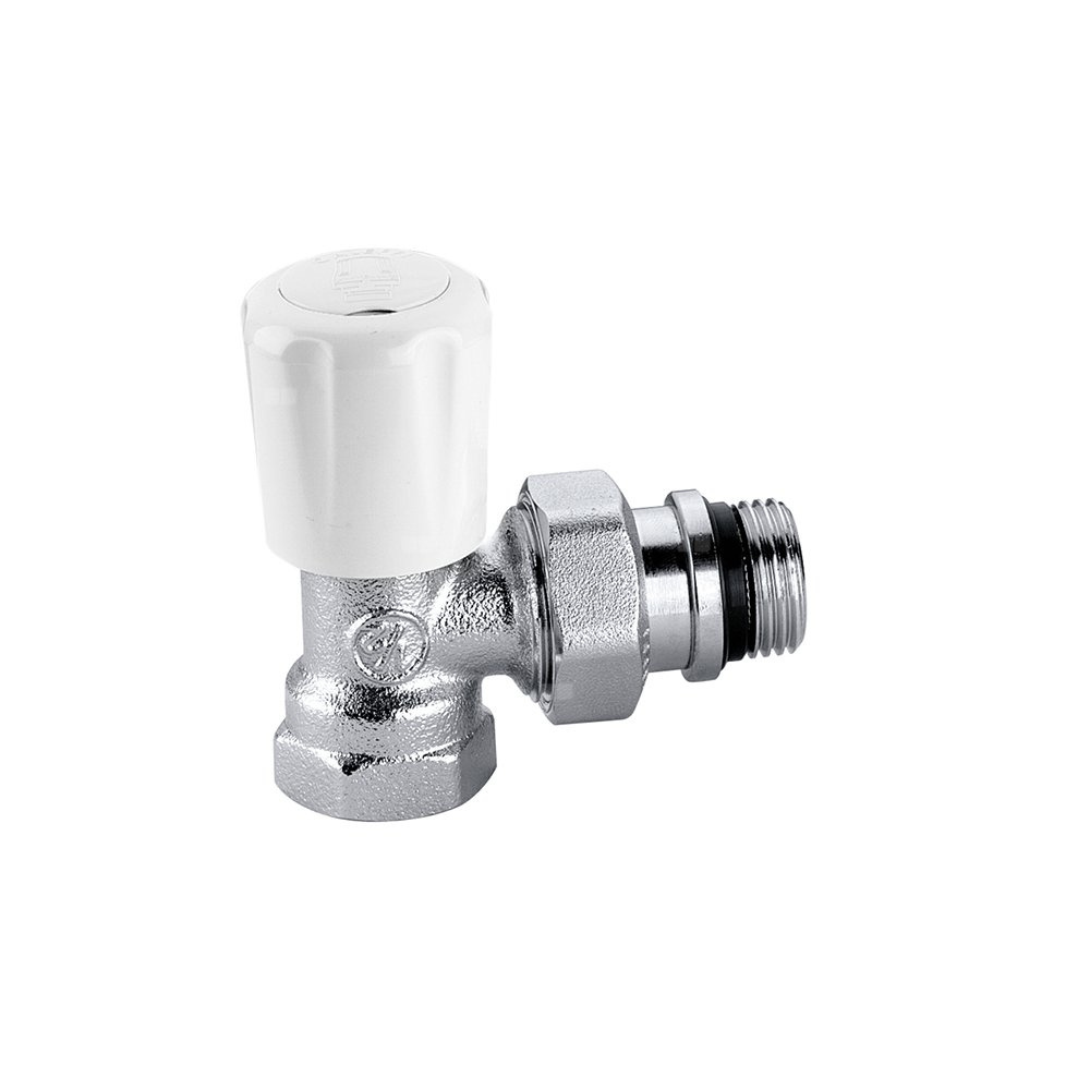Kątowy grzejnikowy zawór termostatyczny z pokrętłem, przystosowany do montażu głowic termostatycznych, elektronicznych i siłowników termoelektrycznych podłącznie rury: G 3/4" (ISO 228-1) GW, wlot, podłączenie kątowe. podłączenie grzejnika: G 3/4" A (ISO 228-1) GZ, wylot, podłączenie kątowe. Maksymalne ciśnienie pracy: 10 bar. Zakres temperatury medium: 5–100 °C. Wykończenie: chromowane. Materiał: mosiądz.