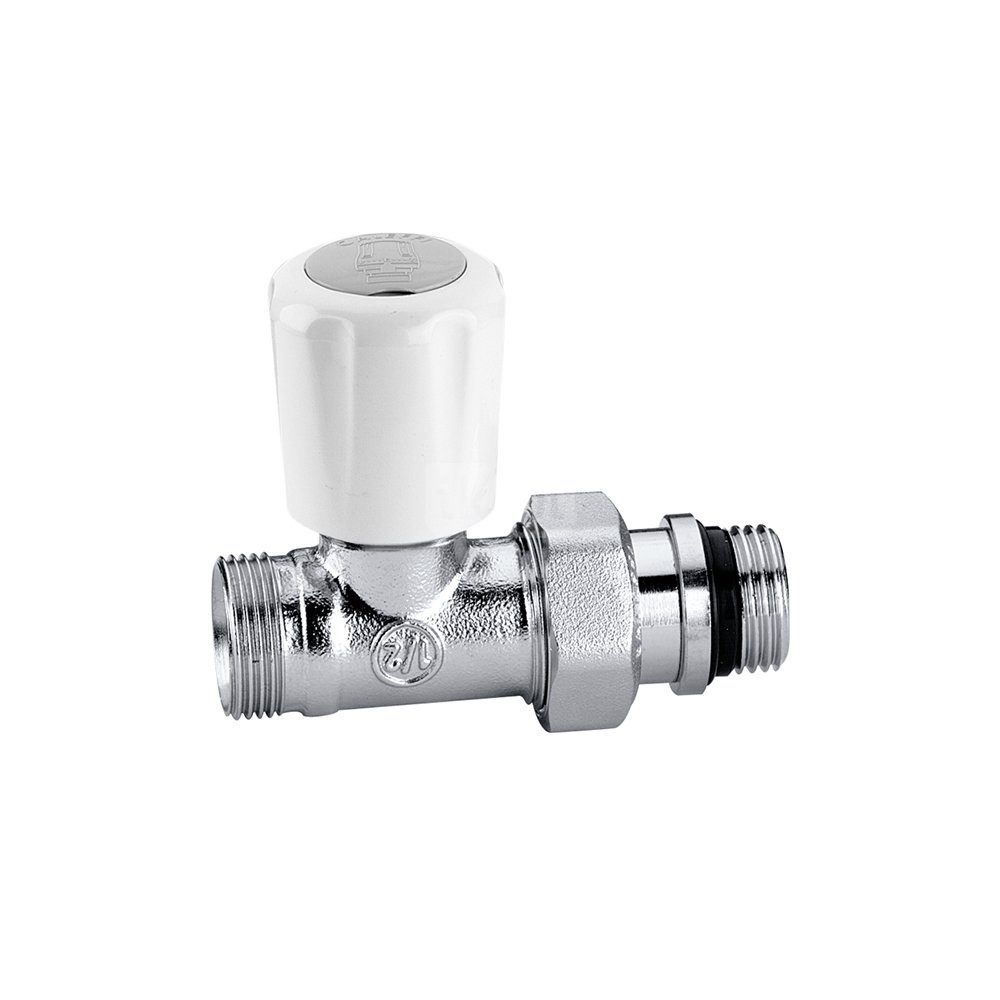 Prosty grzejnikowy zawór termostatyczny z pokrętłem przystosowany do montażu głowic termostatycznych, elektronicznych i siłowników termoelektrycznych. podłącznie rury: G 3/4" A (ISO 228-1) GZ, wlot, podłączenie proste, Podłączenie do złączek Caleffi. podłączenie grzejnika: G 1/2" A (ISO 228-1) GZ, wylot, podłączenie proste. Maksymalne ciśnienie pracy: 10 bar. Zakres temperatury medium: 5–100 °C. Wykończenie: chromowane. Kv: 1,79 m³/h. Cv: 2.0 gpm. Materiał: mosiądz.