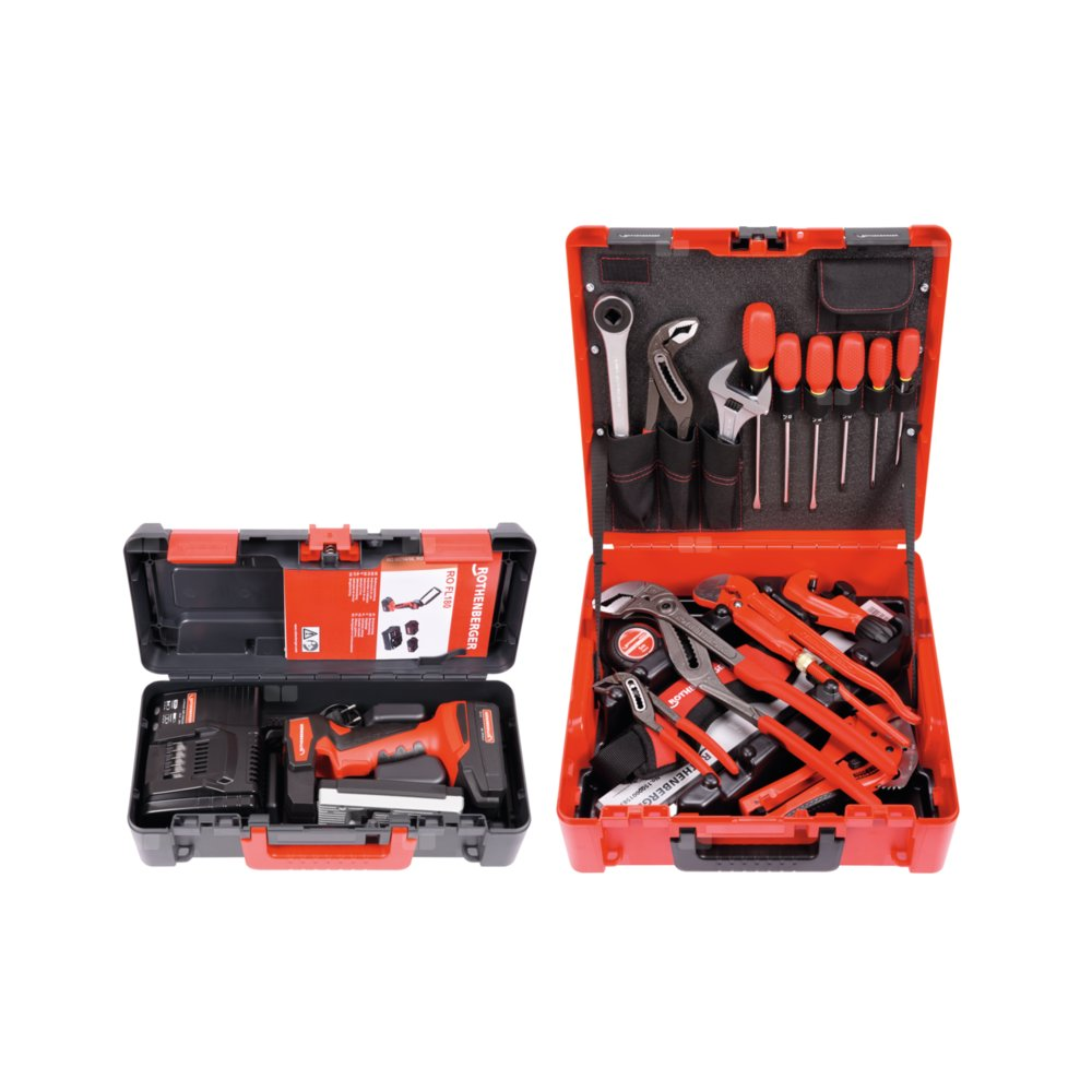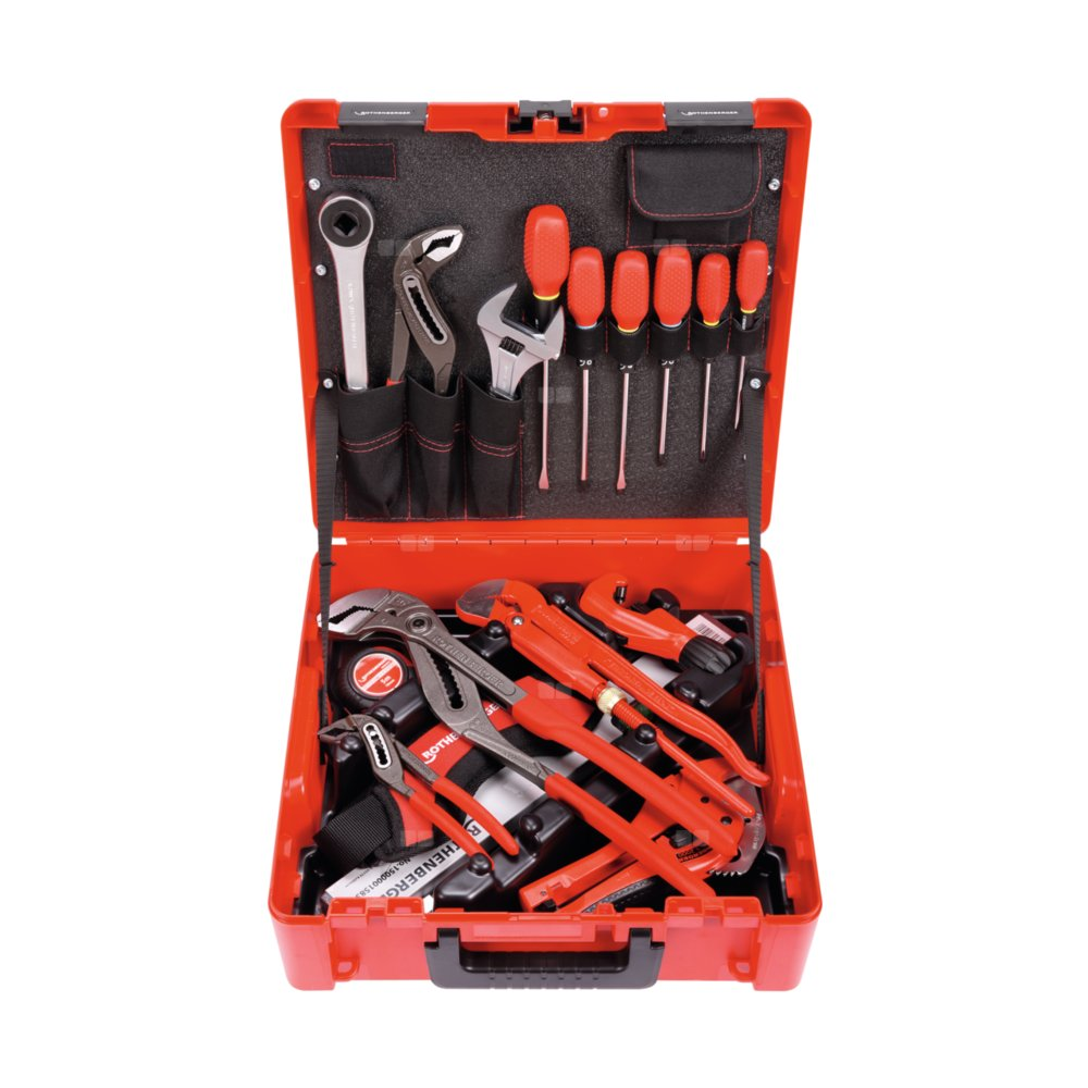 Zestaw 18-częściowych narzędzi ręcznych jest idealny do zastosowania w obszarze SHK. Dzięki uniwersalnym narzędziom można trzymać, chwytać, ciąć, mierzyć i wkręcać. Do bezpiecznego transportu służy solidna walizka ROCASE z praktycznymi kieszeniami i uchwytami na narzędzia. Wyściełany pasek na ramię wspomaga przenoszenie i jest oczywiście zawarty w zakresie dostawy, dzięki czemu masz zawsze wolne ręce do innych narzędzi lub materiałów.