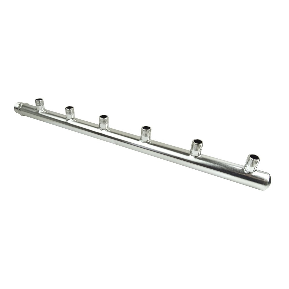 PHA-123 6-ob. rozdzielacz ze stali nierdzew. przyłączeniowy wodomierza/ciepłomierza nyplowy 1"GZx1/2"GZ (rozstaw100mm)PN10
