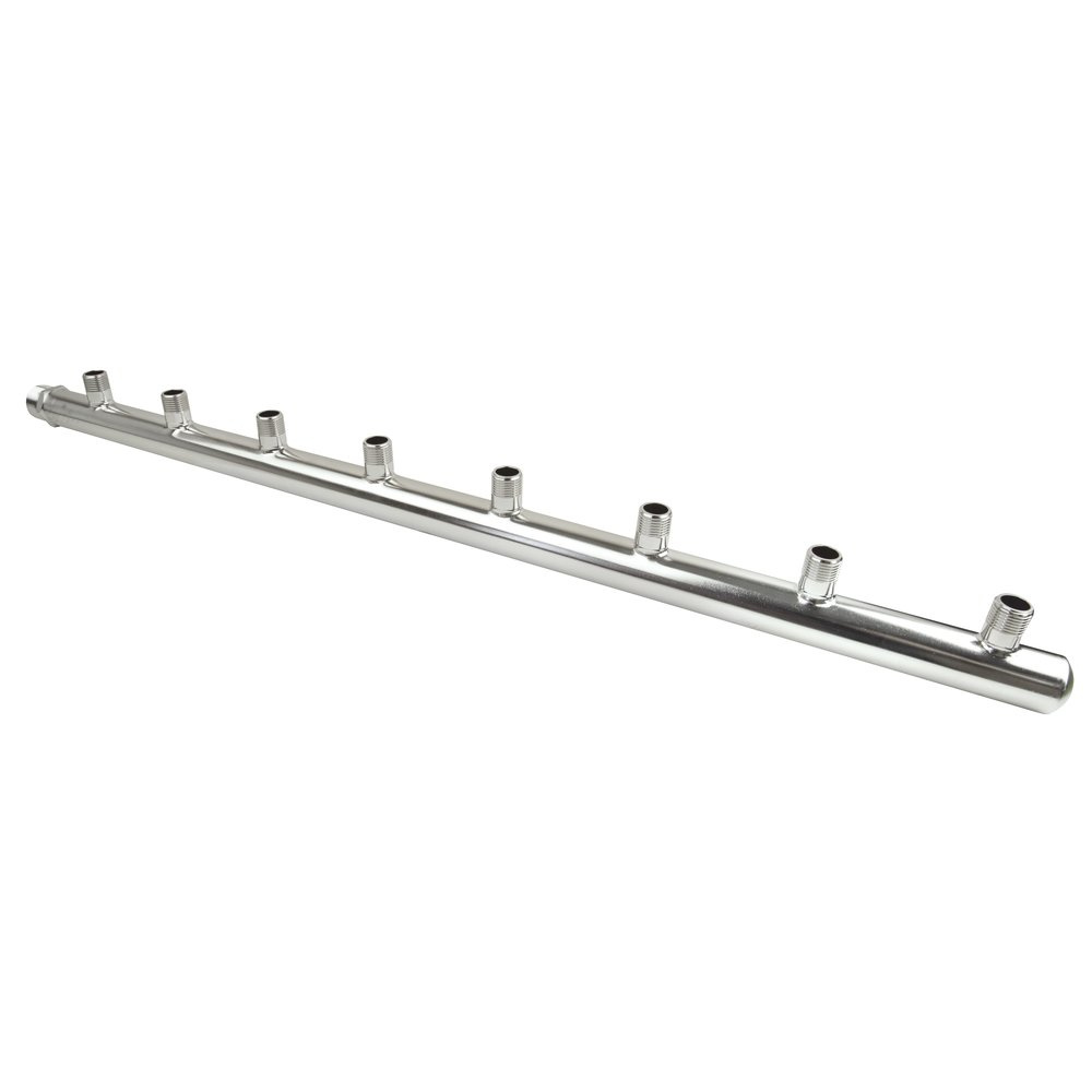 PHA-123 8-ob. rozdzielacz ze stali nierdzew. przyłączeniowy wodomierza/ciepłomierza nyplowy 1"GZx1/2"GZ (rozstaw100mm)PN10