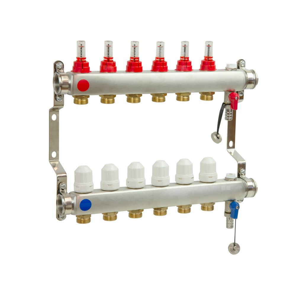 PHA-127/1/S 14-obwodowy PN6 Rozdzielacz ze stali nierdzewnej z odpowietrznikiem ręcznym do ogrzewania podłogowego