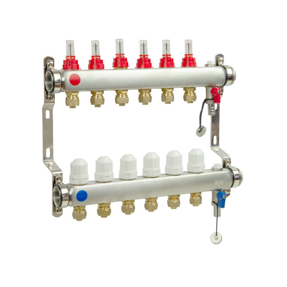PHA-127/1/S/Z 11-obwodowy PN6 Rozdzielacz ze stali nierdzewnej do ogrzewania podłogowego z odpowietrznikiem ręcznym oraz ze złączkami 16x1/2"
