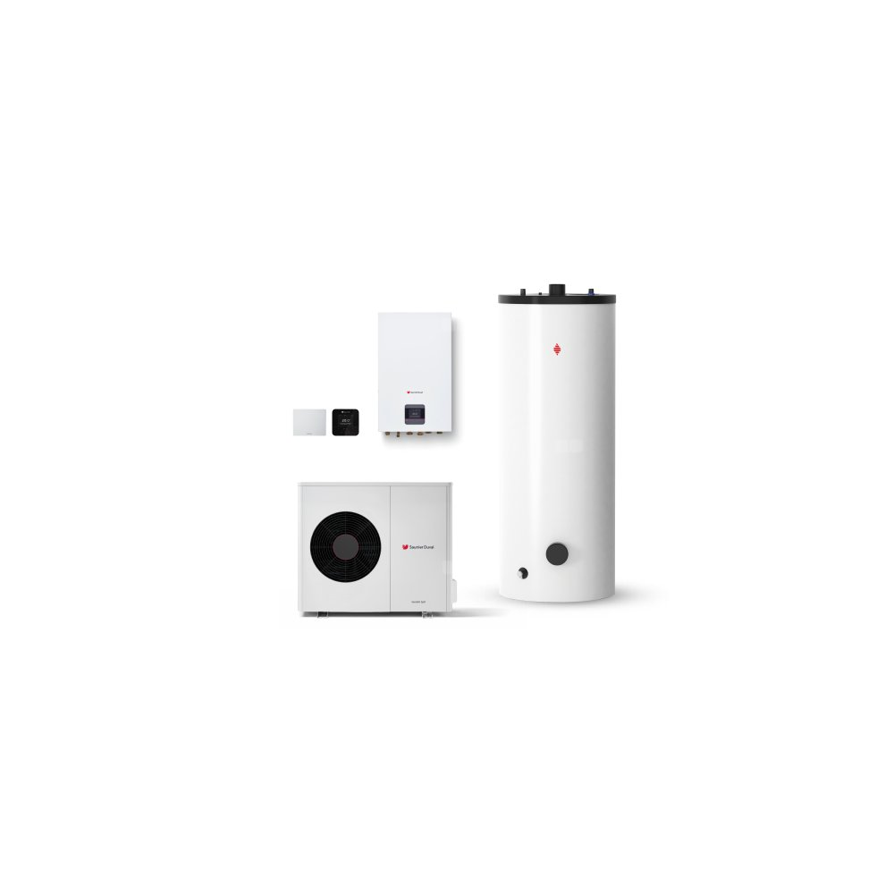 Pompa ciepła powietrze/woda typu split HA 5-8.2 OS 230V, moduł ścienny HA 5-8.2 WSB, regulator MiPro sense SRC 720, zintegrowany moduł internetowy SR 940, zasobnik cwu FEW 250, czujnik cwu w dostawie z modułem ściennym.