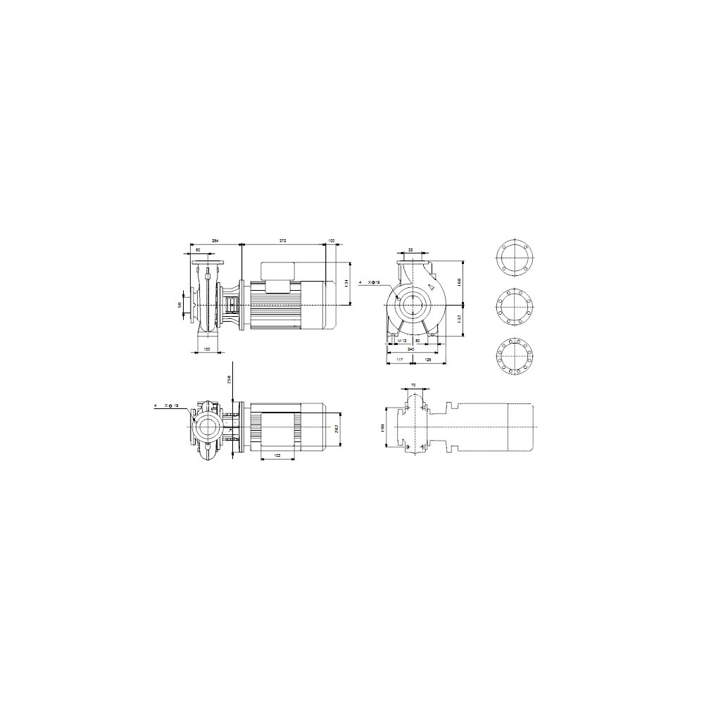 Normalnie ssąca, jednostopniowa pompa odśrodkowa zaprojektowana zgodnie z ISO 5199, o wymiarach i nominalnych osiągach wg EN 733 (10 bar). Wyposażona jest w kołnierze typu PN 16 o wymiarach według EN 1092-2. Pompa wyposażona jest w osiowy króciec ssawny, promieniowy króciec tłoczny, wał poziomy oraz konstrukcję back-pull-out umożliwiającą demontaż silnika, podstawy silnika, pokrywy oraz wirnika bez naruszania obudowy pompy lub rur.