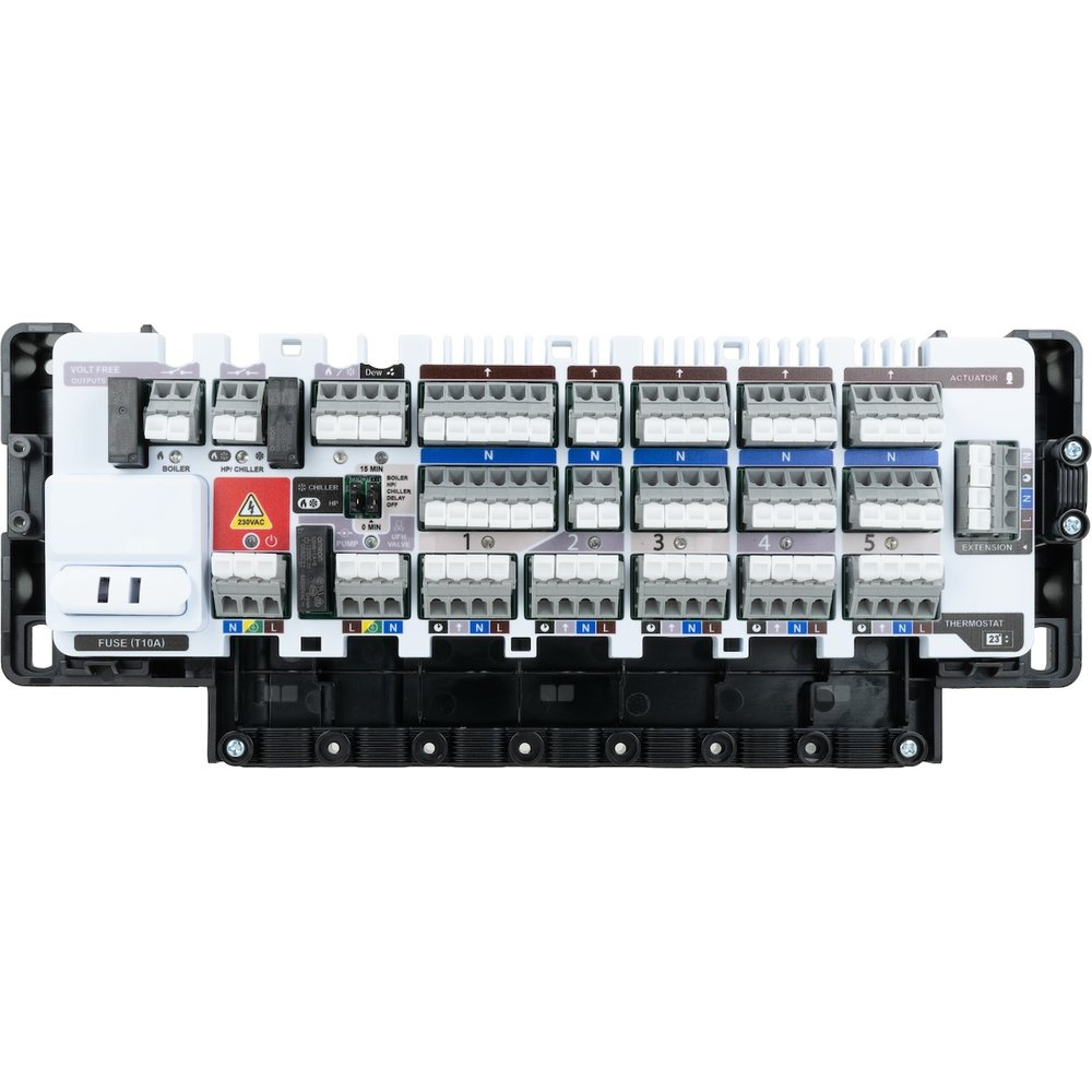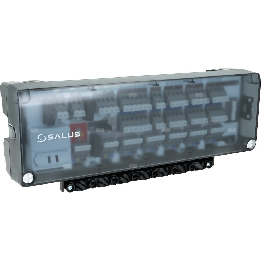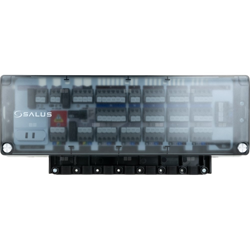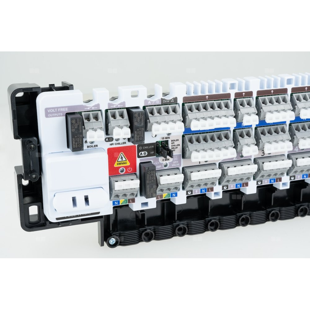 - Umożliwia podłączenie regulatorów do grzania/chłodzenia płaszczyznowego.