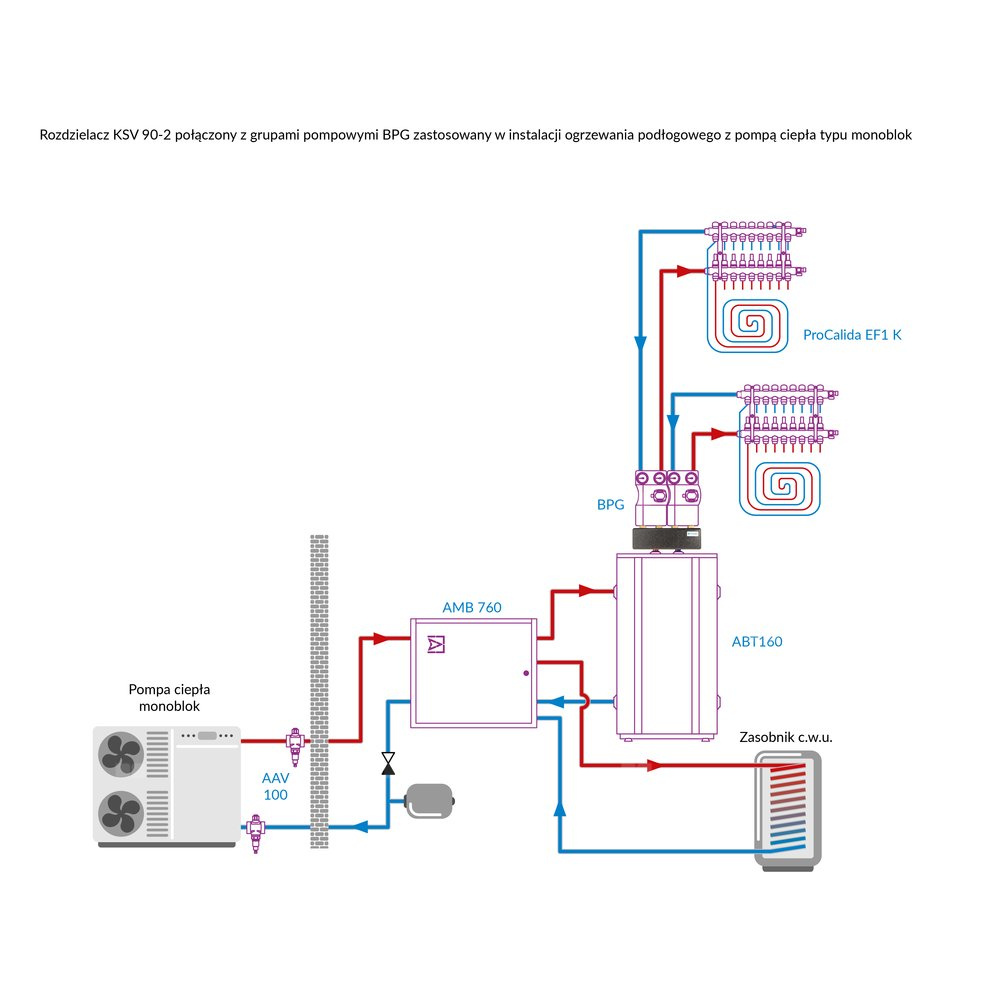 Przeznaczony do szybkiego i wygodnego podłączenia dwóch grup pompowych BPG do źródła ciepła/chłodu.