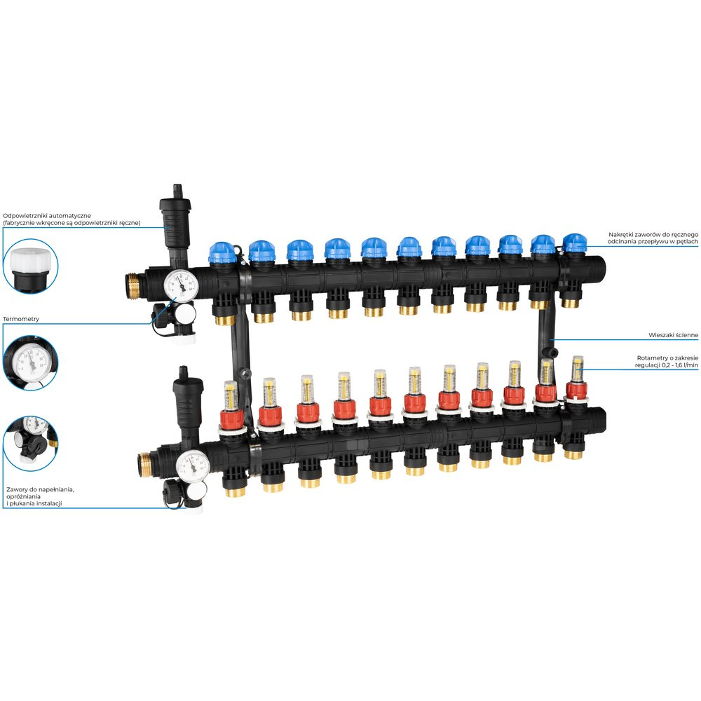 Rozdzielacz do ogrzewania podłogowego AFRISO ProCalida EF1 11-obieg. poliamid GZ 1'' x euroconus 3/4''