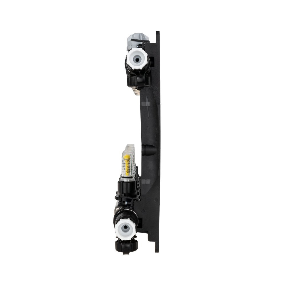 Belka powrotna wyposażona w nakrętki zaworów do ręcznego odcinania strumienia w danej pętli.