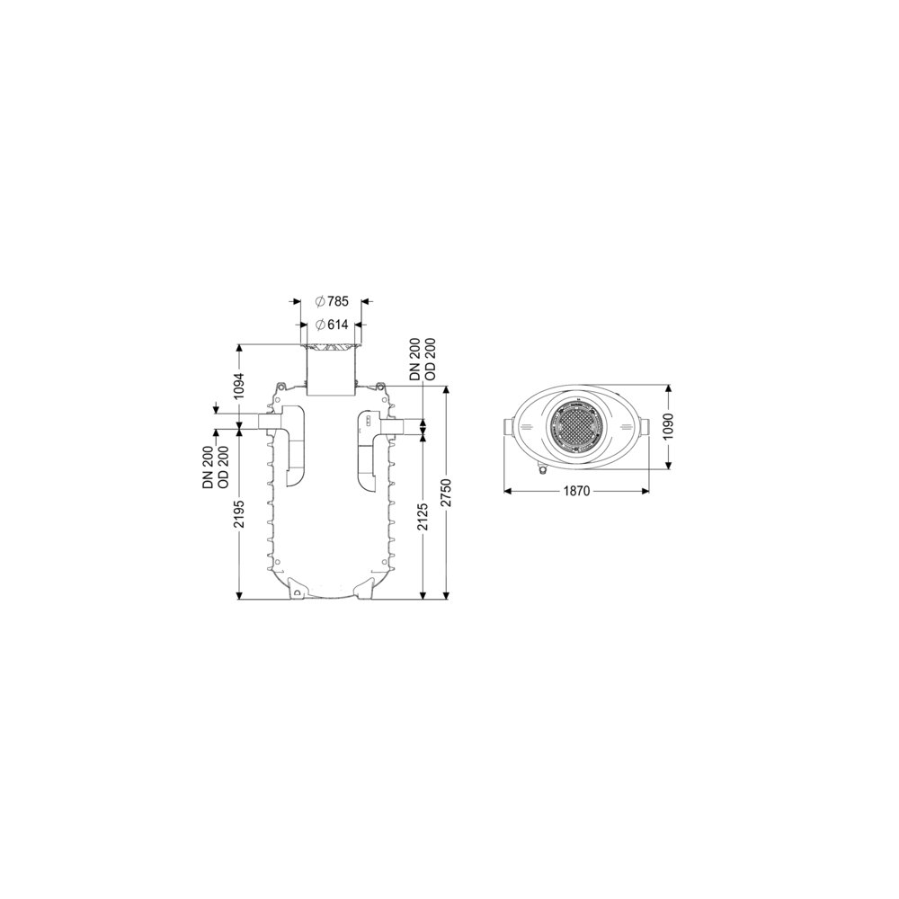 Odstęp między dnem rury dopływowej a dnem zbiornika: 2195 mm