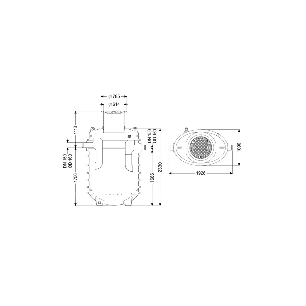 Odstęp między dnem rury odpływowej a dnem zbiornika: 1685 mm