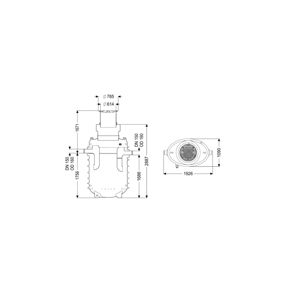 Odstęp między dnem rury odpływowej a dnem zbiornika: 1685 mm