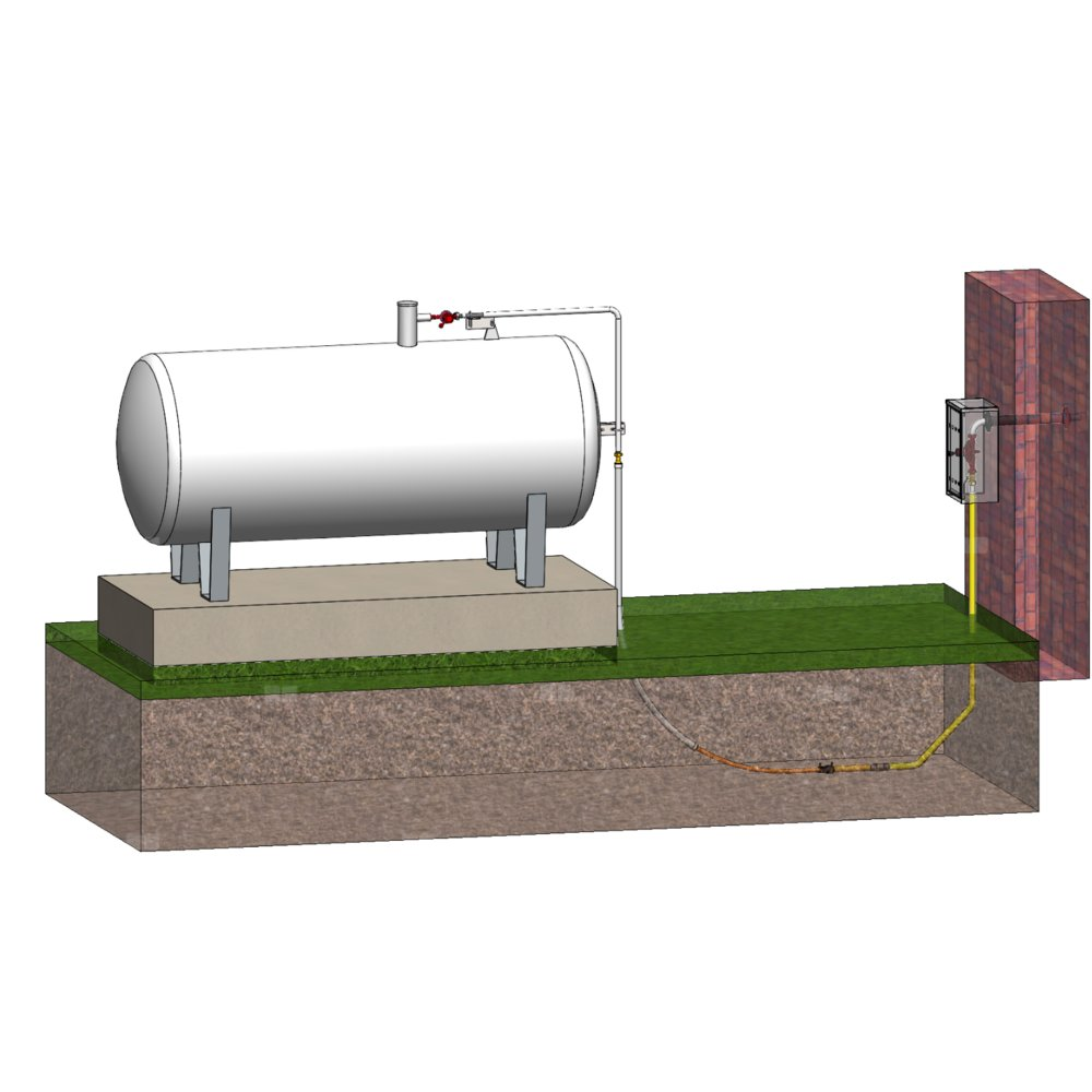 Zestaw przyłączeniowy umożliwiający kompleksowe przyłączenie zbiornika naziemnego z budynkiem.
