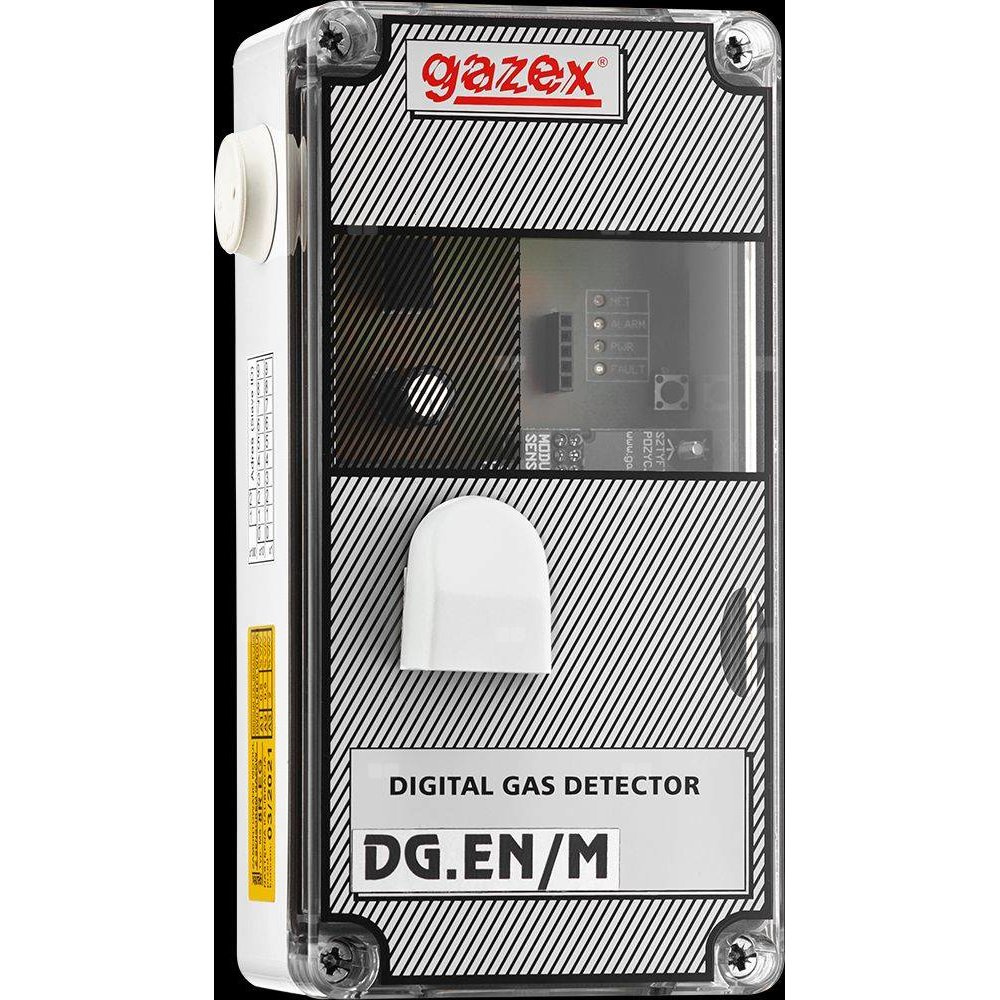 Dzięki wbudowanemu układowi kompensacji termicznej detektory mogą być stosowane przy zmiennych warunkach temperaturowych otoczenia. Posiadają bryzgoszczelną osłonę sensora gazu (w zalecanej pozycji montażowej). Detektory DG.EN dostępne są z półprzewodnikowymi sensorami iNteligentnymi, w tym z sensorami dwugazowymi. Moduły sensoryczne do DG.EN są zamienne (można stosować różne moduły do tego samego korpusu DG-…EN). Należy jednak uwzględnić warunki instalacji dla poszczególnych mediów. Moduły sensoryczne są także kompatybilne z modułami w detektorach typu WG.EG, WG.NG i DG.EN/M. Detektory przeznaczone do wykrywania gazów cięższych od powietrza, montowane w strefach narażonych na uszkodzenia mechaniczne (składy, hurtownie, parkingi, warsztaty) mogą być wyposażone w osłonę z rur profilowanych typu AR-1.