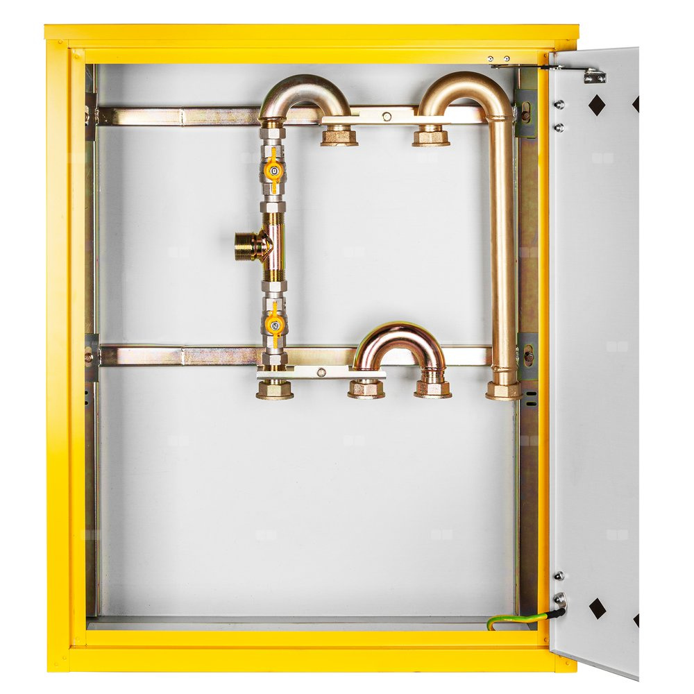 Punkt redukcyjno-pomiarowy na 2 gazomierze G4/G6, w pionie, w skrzynce metalowej 700x850x250 - żółty