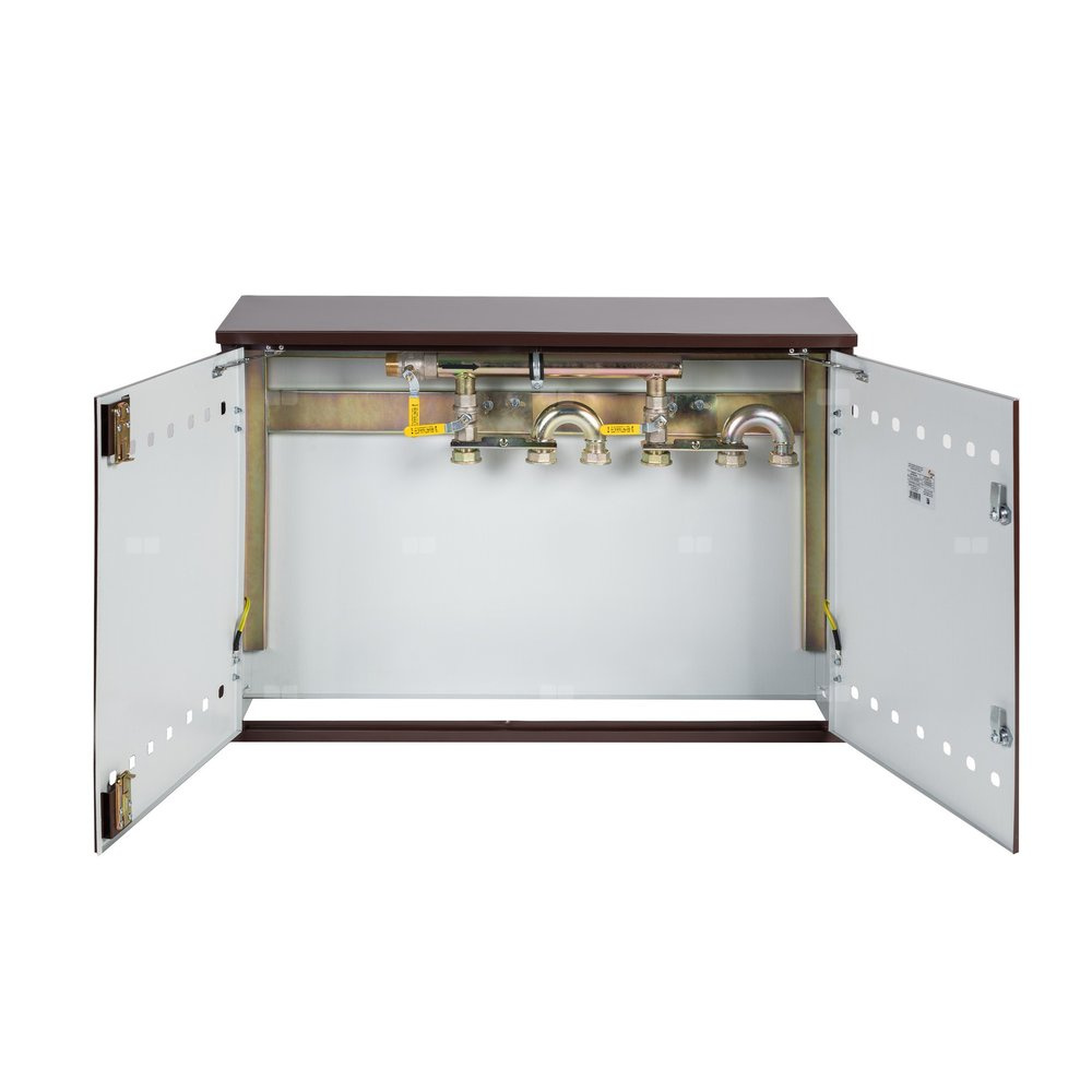 Punkt redukcyjno-pomiarowy na 2 gazomierze G4/G6, w poziomie, w skrzynce metalowej 1050x700x250 - brązowy